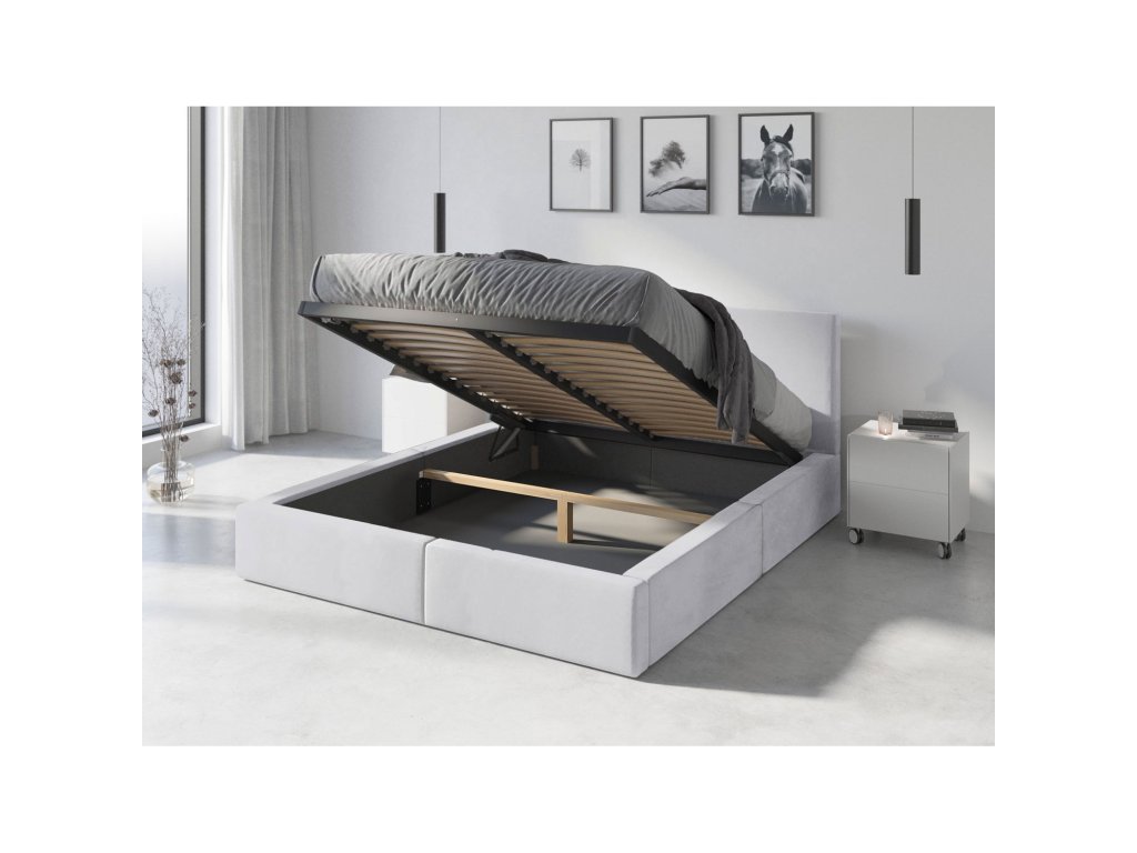 Čalouněná postel HILTON s matrací 160x200 cm. Moderní čalouněná postel vám poskytne pohodlné spaní. Elegance, jednoduchost a styl jsou hlavními výhodami těchto nadčasových čalouněných postelí. Vysoké čelo poskytuje výbornou podporu pro záda vsedě, což oceníte při čtení knih nebo sledování televize. Potah: Tkanina Trinity je syntetická textilie vyrobená ze 100% polyesteru. Měkká velurová tkanina je vysoce odolná a pevná. Struktura vláken není viditelná, látka je hladká a semišově hebká. Typickým rysem je omezená absorpce kapalin a odolnost vůči žmolkování. Rošt: Rošt je upevněný na dvou kovových pružinových mechanismech, kde je 30 březových lamel, které jsou upevněny na kovové konstrukci. Matrace: Matrace jsou vyrobeny z polyuretanové pěny. Jsou s odnímatelným potahem, který je prošívaný. Potah matrace je vyroben z polyesteru a je se zipem. Po zvednutí roštu je prostor rozdělen přepážkou. Zadní část přepážky nemá panel, zatímco přední část obsahuje přihrádku na ložní prádlo. Lehká a pevná konstrukce dokonale zajišťuje potřebnou stabilitu. - použití kvalitních materiálů - zajímavé provedení - snadná montáž Údržba: Vyhněte se použití chemikálií.Doplňkové parametry