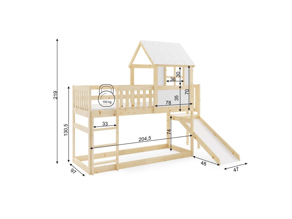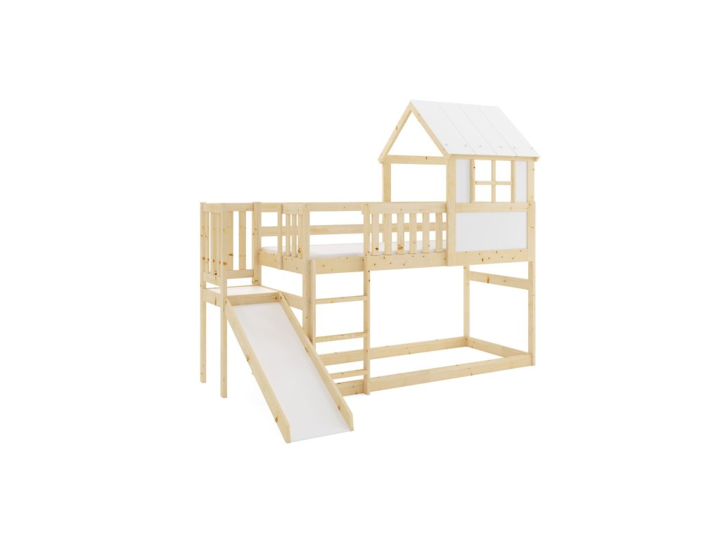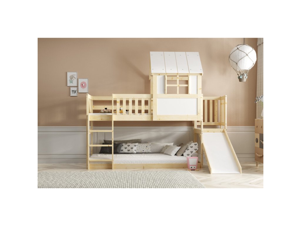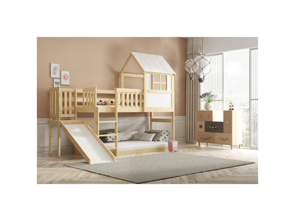 Dětská patrová postel ANTRESOLA se skluzavkou 90x200 cm. Dětská postel včetně matrace a roštu. Tento styl postele je oblíbený mezi dětmi, protože přináší kreativitu a nápaditost do jejich pokoje. S ohledem na děti je veškerý sortiment vyroben ekologicky. Je tedy vyloučeno při kontaktu dítěte s nábytkem požití toxických nebo zdraví škodlivých látek. - kvalitní masivní borovice - součástí postele je rošt a matrace - kvalitní zpracovnání Údržba: Povrch nábytku utírejte do čista měkkým hadříkem. Vyhněte se použití chemikálií.Doplňkové parametry