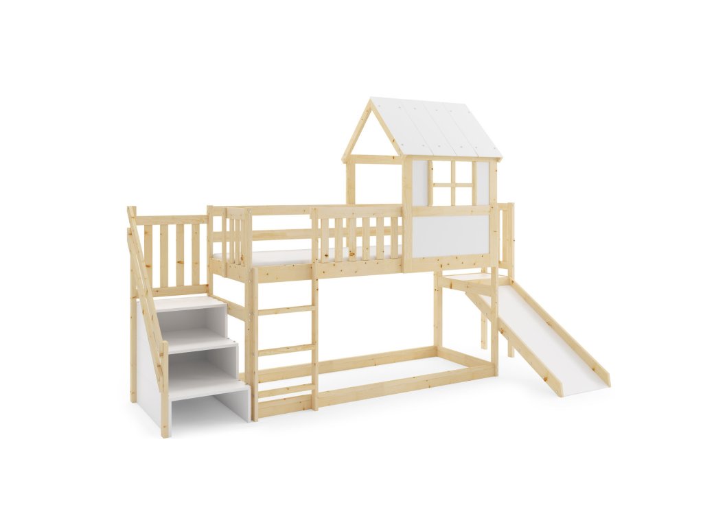 Dětská patrová postel ANTRESOLA se skluzavkou a schůdky 90x200 cm