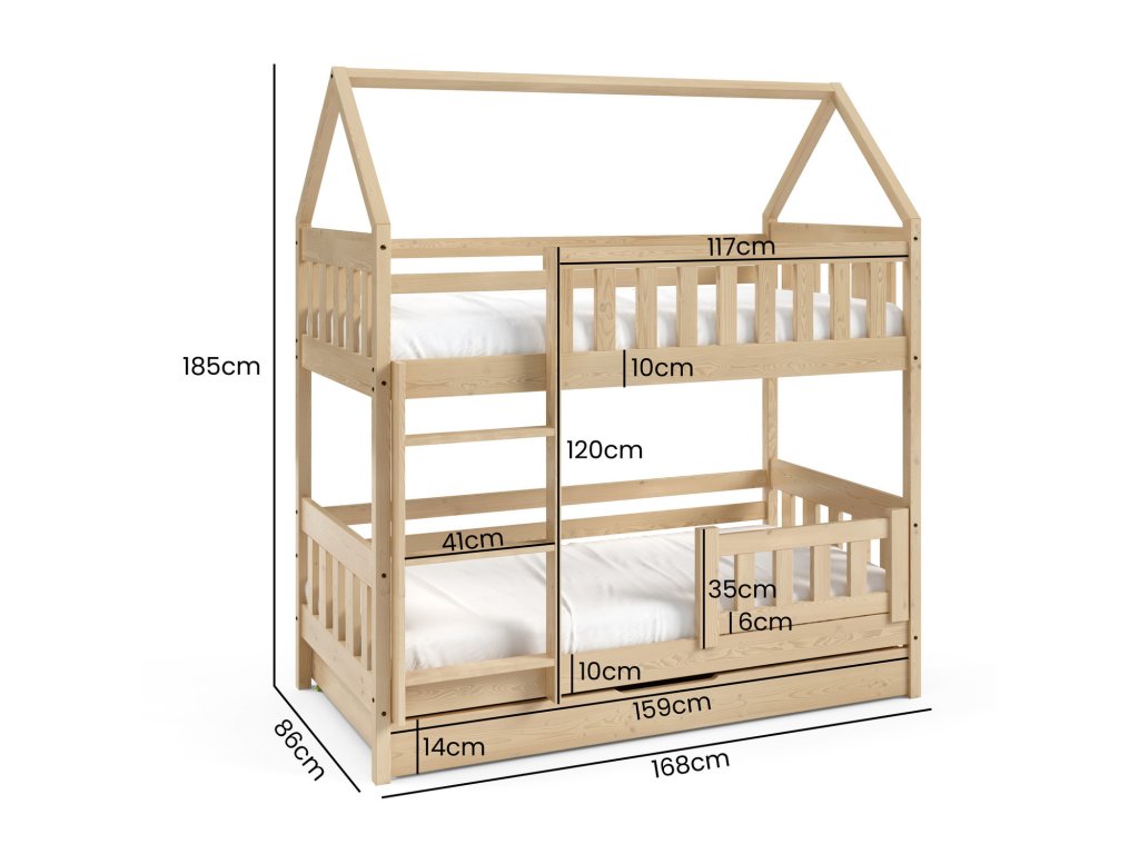 Dětská patrová postel Claudia 80x160 cm - s úložným šuplíkem. Tento styl postele je oblíbený mezi dětmi, protože přináší kreativitu a nápaditost do jejich pokoje. S ohledem na děti je veškerý sortiment vyroben ekologicky. Je tedy vyloučeno při kontaktu dítěte s nábytkem požití toxických nebo zdraví škodlivých látek. - kvalitní masivní borovice - součástí postelí je rošt - kvalitní zpracovnání - bez matrací Údržba: Povrch nábytku utírejte do čista měkkým hadříkem. Vyhněte se použití chemikálií.Doplňkové parametry