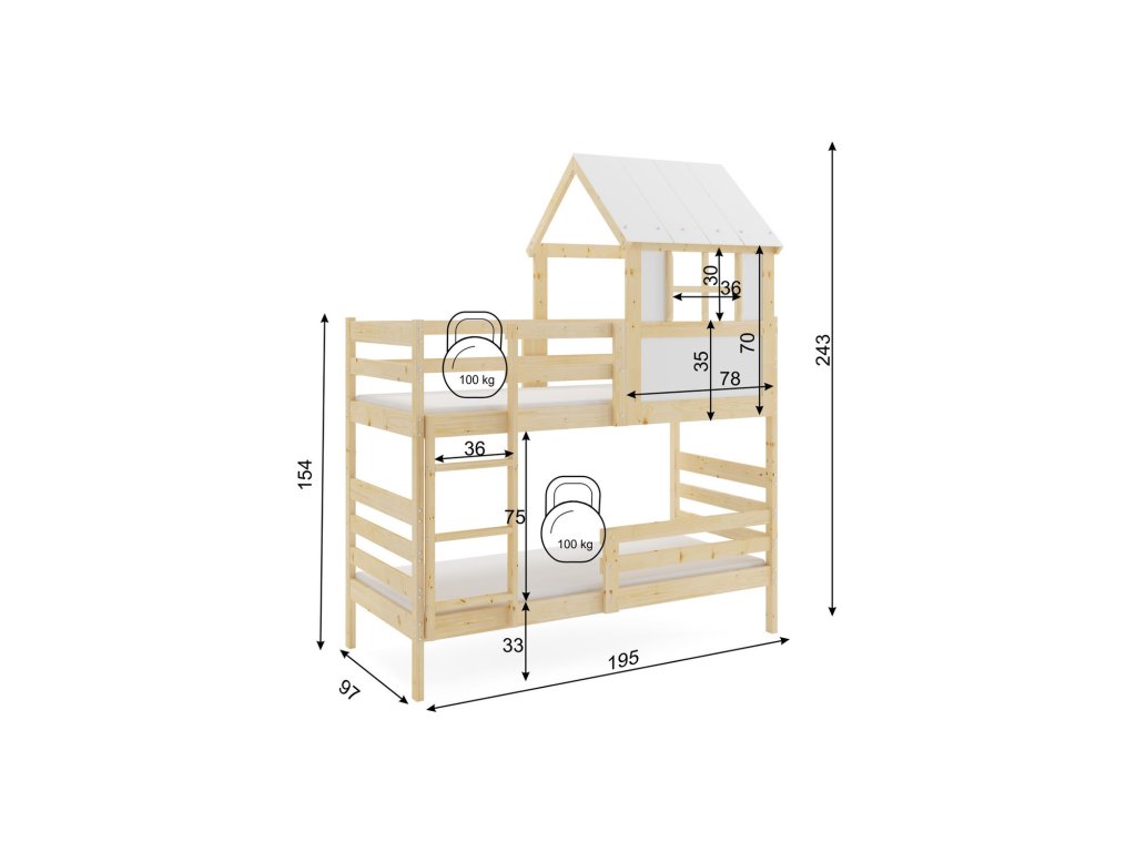Dětská patrová postel ERYK s nástavbou domek 90x190 cm