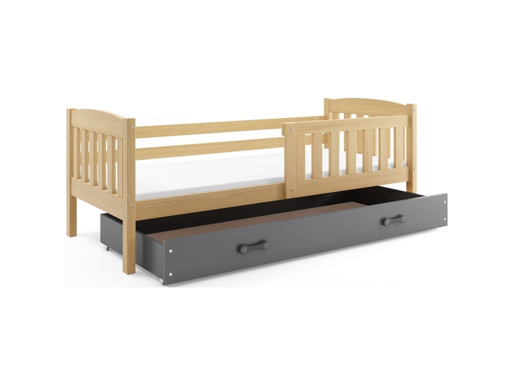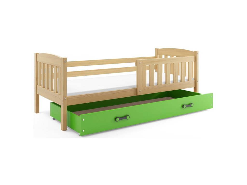 Dětská postel Kubus s úložným prostorem včetně matrace a roštu. Postel obsahuje ochrannou zábranu. S ohledem na děti je veškerý sortiment vyroben ekologicky. Je tedy vyloučeno při kontaktu dítěte s nábytkem požití toxických nebo zdraví škodlivých látek. - Moderní postel vyrobená z masivu borovice. - 100% ochrana pro vaše dítě díky bezpečnostní zábraně. - Rošt vyrobený ze dřeva, z pružinových lamel, které jsou upevněné PVC madlem na kovové liště. - Pěnová matrace, která je vysoce hypoalergenní s lehce snímatelným potahem, potah lze prát v pračce. Matrace je univerzální, vzdušná a velmi dobře odvádí vlhkost. Výška matrace je 7 cm. Údržba: Doporučujeme čistit pouze jemnou houbičkou. Nebělte, mohlo by dojít k poškození vláken.Doplňkové parametry