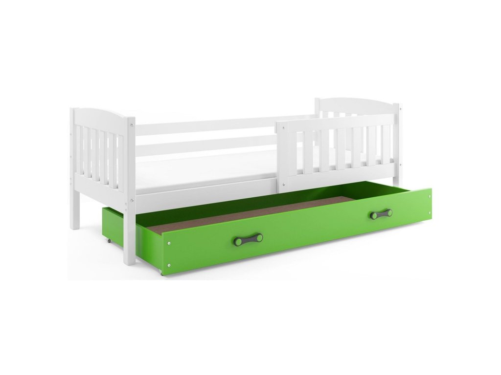 Dětská postel Kubus s úložným prostorem včetně matrace a roštu. Postel obsahuje ochrannou zábranu. S ohledem na děti je veškerý sortiment vyroben ekologicky. Je tedy vyloučeno při kontaktu dítěte s nábytkem požití toxických nebo zdraví škodlivých látek. - Moderní postel vyrobená z masivu borovice. - 100% ochrana pro vaše dítě díky bezpečnostní zábraně. - Rošt vyrobený ze dřeva, z pružinových lamel, které jsou upevněné PVC madlem na kovové liště. - Pěnová matrace, která je vysoce hypoalergenní s lehce snímatelným potahem, potah lze prát v pračce. Matrace je univerzální, vzdušná a velmi dobře odvádí vlhkost. Výška matrace je 7 cm. Údržba: Doporučujeme čistit pouze jemnou houbičkou. Nebělte, mohlo by dojít k poškození vláken.Doplňkové parametry