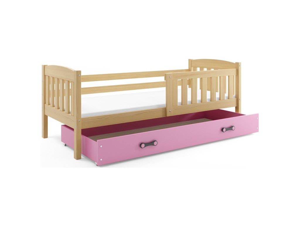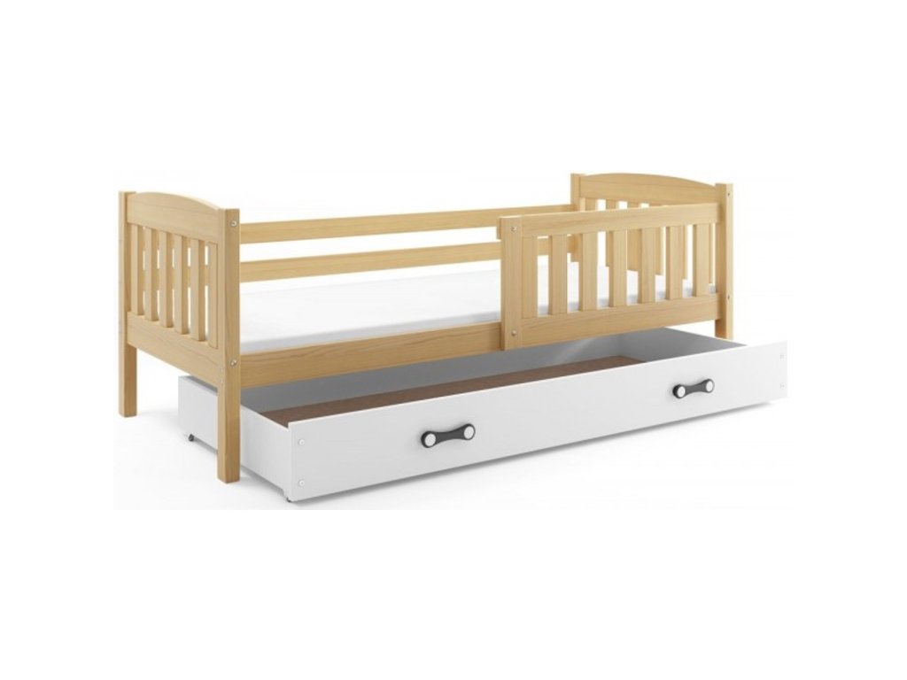 Dětská postel Kubus s úložným prostorem včetně matrace a roštu. Postel obsahuje ochrannou zábranu. S ohledem na děti je veškerý sortiment vyroben ekologicky. Je tedy vyloučeno při kontaktu dítěte s nábytkem požití toxických nebo zdraví škodlivých látek. - Moderní postel vyrobená z masivu borovice. - 100% ochrana pro vaše dítě díky bezpečnostní zábraně. - Rošt vyrobený ze dřeva, z pružinových lamel, které jsou upevněné PVC madlem na kovové liště. - Pěnová matrace, která je vysoce hypoalergenní s lehce snímatelným potahem, potah lze prát v pračce. Matrace je univerzální, vzdušná a velmi dobře odvádí vlhkost. Výška matrace je 7 cm. Údržba: Doporučujeme čistit pouze jemnou houbičkou. Nebělte, mohlo by dojít k poškození vláken.Doplňkové parametry