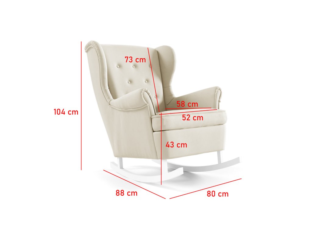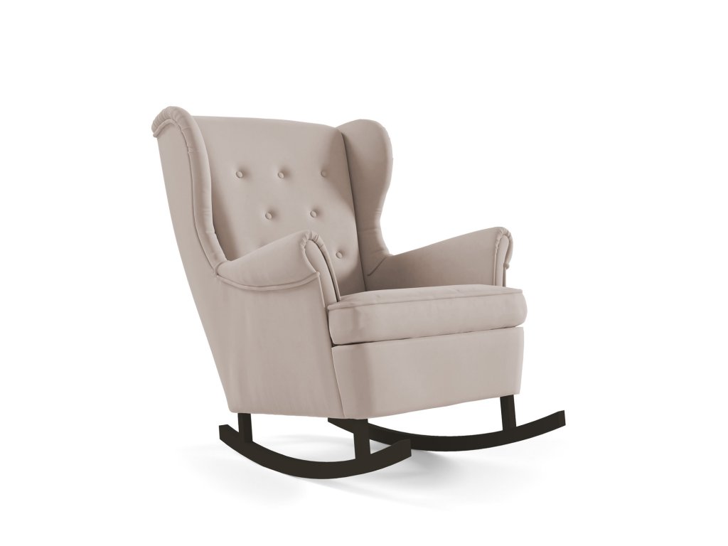 Houpací křeslo LINO 207 - černé nohy. Houpací křeslo LINO 207 se vyznačuje jednoduchým a minimalistickým designem - inspirovaným skandinávským stylem. Skvěle zapadne do moderních a útulných interiérů. Vyznačuje se odolností a mimořádnou kvalitou zpracování. Výplň - kvalitní PUR pěna. Velmi pohodlná díky vlnité pružině. Potah Tkanina Kronos vyrobená ze 100% polyesteru se řadí mezi plyšové tkaniny. Tkaná textilie je velice měkká a příjemná na dotek. Využívá se v čalounictví jako potahová látka pro pohovky, postele nebo křesla. Výhodou textilie Kronos je, že nežmolkovatí. Vyznačuje se sametovou jemností. K čištění vám postačí pouze speciální čistící prostředek a jemná houbička. Nabízíme v barvě - žlutá, zelená, růžová. Tkanina Paros je vyrobena ze 100% polyesteru, je velice jemná a hebká na dotek. Díky svým vlastnostem se řadí mezi sametové látky. Jemná struktura látky je dostatečně pevná. Je dostatečně pevná a odolná. Údržba a čištění se doporučuje pouze vlhčeným hadříkem, vodou nebo speciálním prostředkem na čalouněný nábytek. Nabízíme v barvě - krémová, béžová, hnědá, šedá. Tkanina Velluto je hladká sametová látka s bezchybným elegantním leskem. Měkká a příjemná na dotek, je vysoce odolná proti oděru. Nabízíme v barvě - modrá, černá. Údržba - Doporučujeme čistit pouze jemnou houbičkou. Nebělte, mohlo by dojít k poškození vláken.Doplňkové parametry