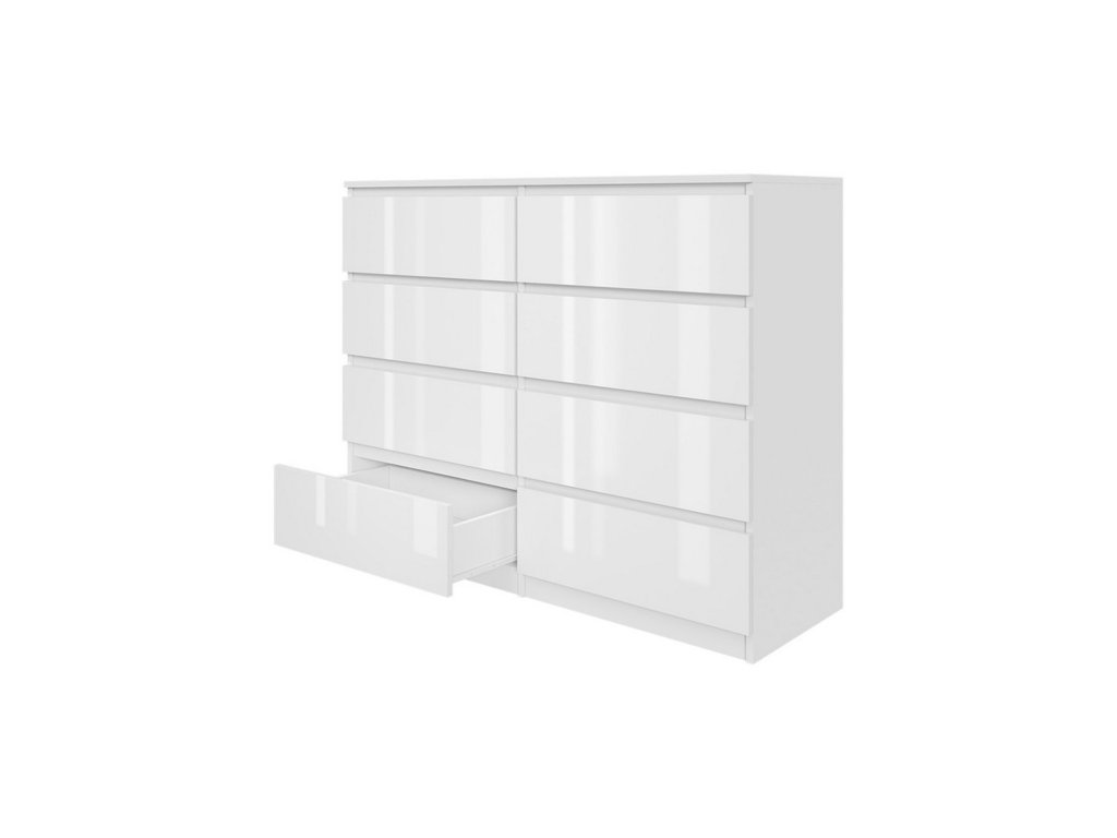 Komoda 120/8 - bílý lesk. Jednoduchá a moderní komoda. Je vyrobená z pevné laminované desky, která je odolná proti oděru a poškození. Univerzální vzhled splní očekávání každého, kdo ocení kombinaci jednoduchosti a elegance. Bezúchytková čela zásuvek zajišťují pohodlné používání. V lesku pouze čela zásuvek a dvířka. - použití kvalitních materiálů - zajímavé provedení - snadná montáž Údržba: Povrch nábytku utřete do čista měkkým hadříkem. Vyhněte se použití chemikálií.Doplňkové parametry