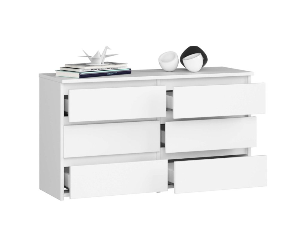 Komoda CL100 6SZ - bílá. Jednoduchá a moderní komoda. Je vyrobená z pevné laminované desky, která je odolná proti oděru a poškození. Univerzální vzhled splní očekávání každého, kdo ocení kombinaci jednoduchosti a elegance. Bezúchytková čela zásuvek zajišťují pohodlné používání. - použití kvalitních materiálů - zajímavé provedení - snadná montáž Údržba: Povrch nábytku utřete do čista měkkým hadříkem. Vyhněte se použití chemikálií.Doplňkové parametry