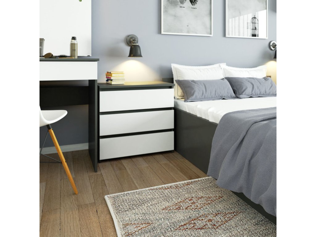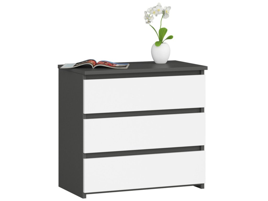 Komoda CL3 3SZ CLP - grafit/bílá. Komoda CL3 je oblíbeným typem nábytku, který můžete umístit vedle postele jako noční stolek. Krásně se bude vyjímat v každé ložnici. Můžete ji umístit i do dětského pokoje. - jednoduchý a moderní design - hladké boky - zásuvky se pohybují na kovových kolejnicích - snadná montáž Údržba: Povrch nábytku utřete do čista měkkým hadříkem. Vyhněte se použití chemikálií.Doplňkové parametry