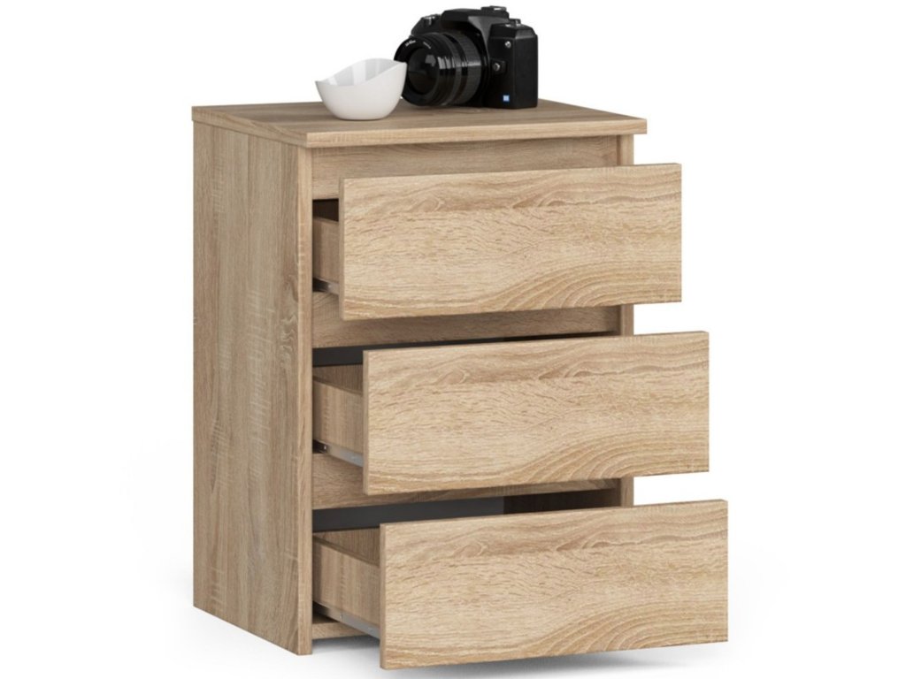 Komoda CL3/40 - dub sonoma. Komoda CL3/40 je oblíbeným typem nábytku, který můžete umístit vedle postele jako noční stolek. Bude vypadat krásně v každé ložnici. Může být také umístěna v dětském pokoji. - jednoduchý a moderní design - hladké boky - zásuvky se pohybují na kovových kolejnicích - snadná montáž Údržba: Povrch nábytku utřete do čista měkkým hadříkem. Vyhněte se použití chemikálií.Doplňkové parametry