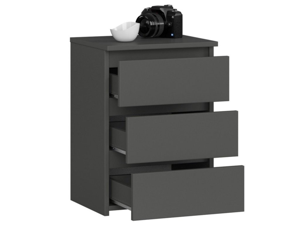 Komoda CL3/40 - grafit. Komoda CL3/40 je oblíbeným typem nábytku, který můžete umístit vedle postele jako noční stolek. Bude vypadat krásně v každé ložnici. Může být také umístěna v dětském pokoji. - jednoduchý a moderní design - hladké boky - zásuvky se pohybují na kovových kolejnicích - snadná montáž Údržba: Povrch nábytku utřete do čista měkkým hadříkem. Vyhněte se použití chemikálií.Doplňkové parametry