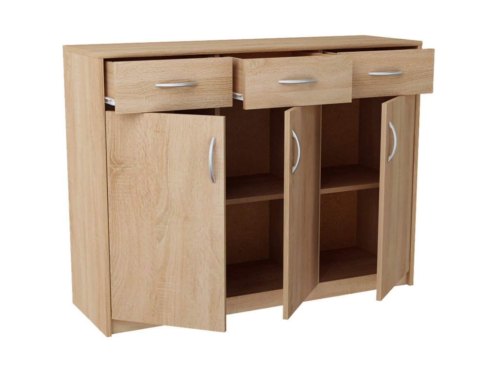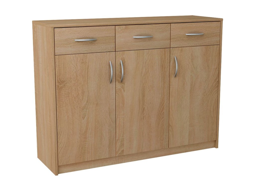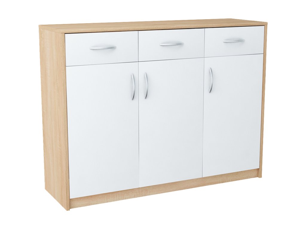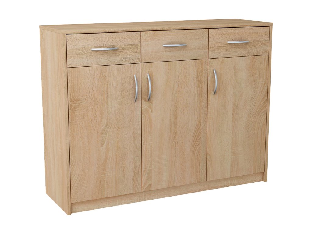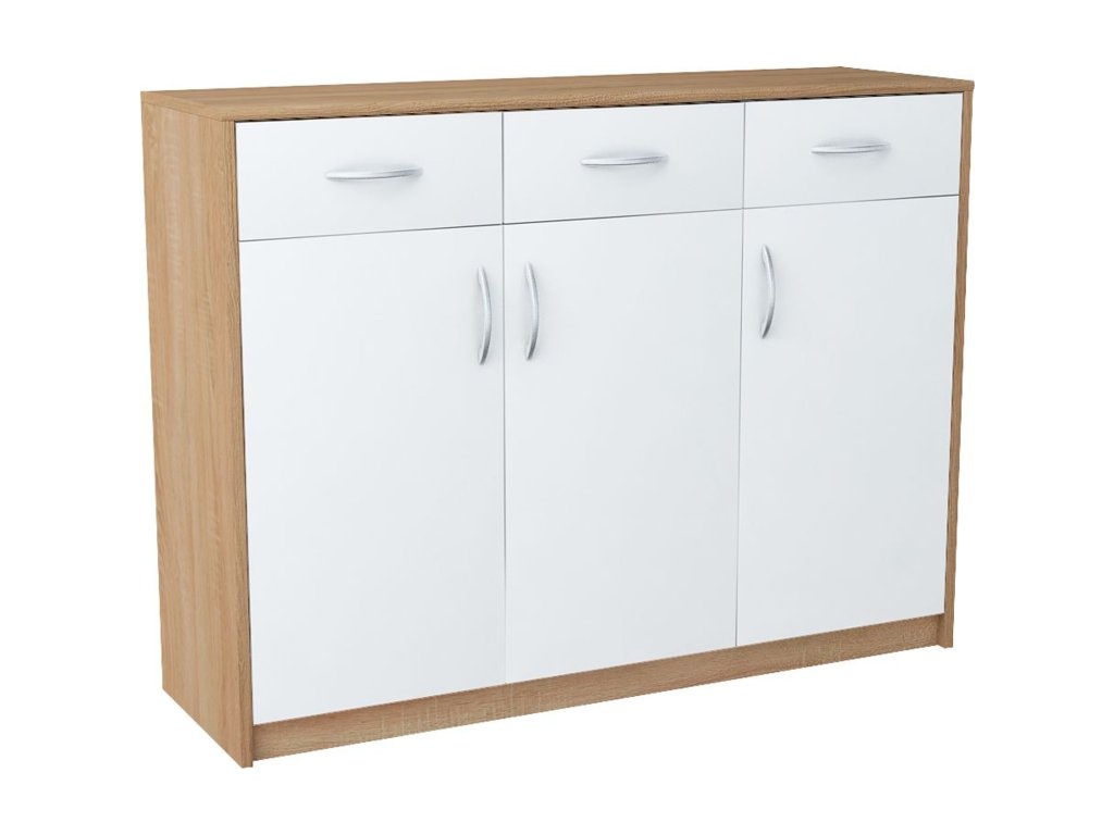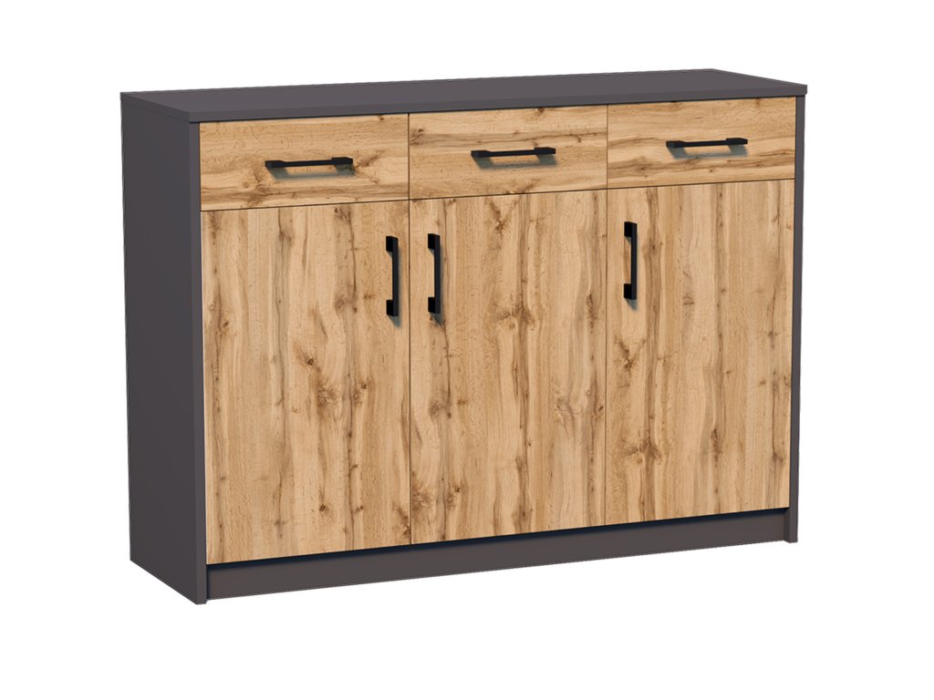 Jednoduchá a moderní komoda Julia K13D3. Je vyrobená z pevné laminované desky, která je odolná proti oděru a poškození. Univerzální vzhled splní očekávání každého, kdo ocení kombinaci jednoduchosti a elegance. - použití kvalitních materiálů - zajímavé provedení - snadná montáž Údržba: Povrch nábytku utřete do čista měkkým hadříkem. Vyhněte se použití chemikálií.Doplňkové parametry