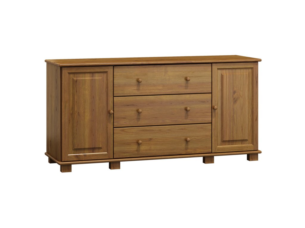 Komoda KN45 156x47 cm. Komoda je vyrobena z borovicového dřeva, které zaručuje odolnou konstrukci. Ergonomický tvar umožňuje efektivně udržovat v uložených věcech pořádek. Zásuvky se vysouvají s lehkostí a zvyšují tak komfort používání. Minimalistický design komody skvěle zapadne do klasických i moderních aranžmá. Nábytek z přírodního materiálu vnese do místnosti vkusný dekorativní prvek. Údržba: Povrch nábytku otírejte vlhčeným hadříkem. Vyhněte se použití chemikálií.Doplňkové parametry