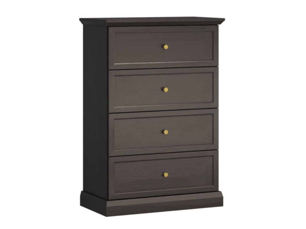 Komoda LUCCA K4S. Praktická komoda se čtyřmi prostornými zásuvkami. Černohnědý nebo bílý dekor s hlubokými přírodními póry dřeva má různé stupně lesku a působí mimořádně dynamicky a velmi rozmanitě. Kolekce Lucca vám umožňuje volně míchat klasický a moderní styl. Kovové úchytky jsou v barvě zlaté u černohnědé varianty a v barvě černé u bílé varianty. - použití kvalitních materiálů - zajímavé provedení - snadná montáž Údržba: Povrch nábytku utřete do čista měkkým hadříkem. Vyhněte se použití chemikálií.Doplňkové parametry