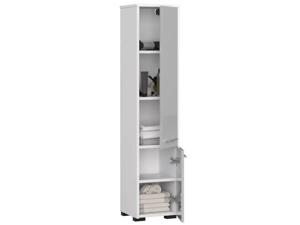 Moderní koupelnová skříňka FIN 2D, která Vás okouzlí svou jednoduchostí. - použití kvalitních materiálů - v lesku pouze pohledová část - zajímavé provedení - snadná montáž Údržba: Povrch nábytku utřete do čista měkkým hadříkem. Vyhněte se použití chemikálií.Doplňkové parametry