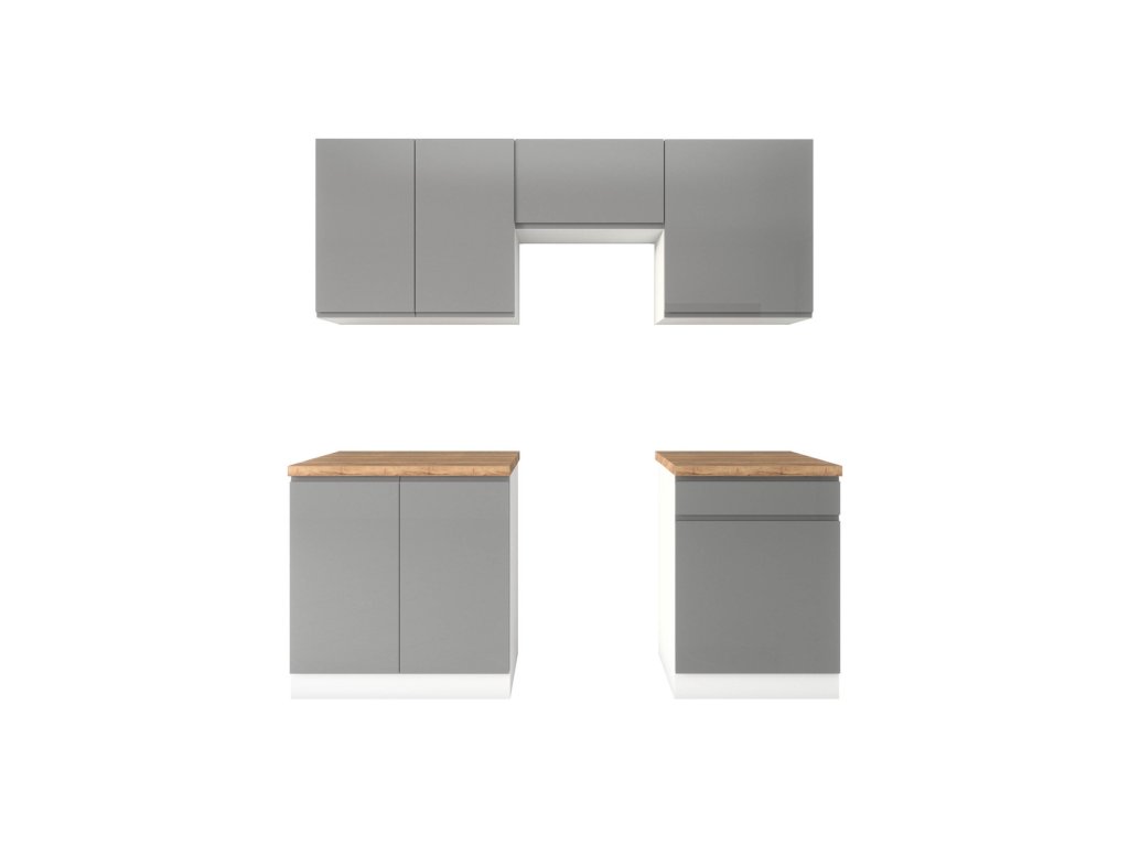 Kuchyňská sestava ASPEN II 2 m. Moderní kuchyňská sestava ASPEN II 2 m v odstínu dub artisan. Hotová sestava, která vám pomůže zařídit malý kuchyňský prostor. V kolekci Aspen naleznete skříňky, díky kterým sestavu rozšíříte. Kuchyňská sestava se skládá z těchto skříněk: 2x G80, G60KN, D60-P, D80Z, D60S1. Způsob otevírání dvířek - bezúchytkový systém s frézováním. - nastavitelné nohy 10 - 12,5 cm - samozavírací panty - použití kvalitních materiálů - zajímavé provedení - snadná montáž Údržba: Povrch nábytku utřete do čista měkkým hadříkem. Vyhněte se použití chemikálií.Doplňkové parametry