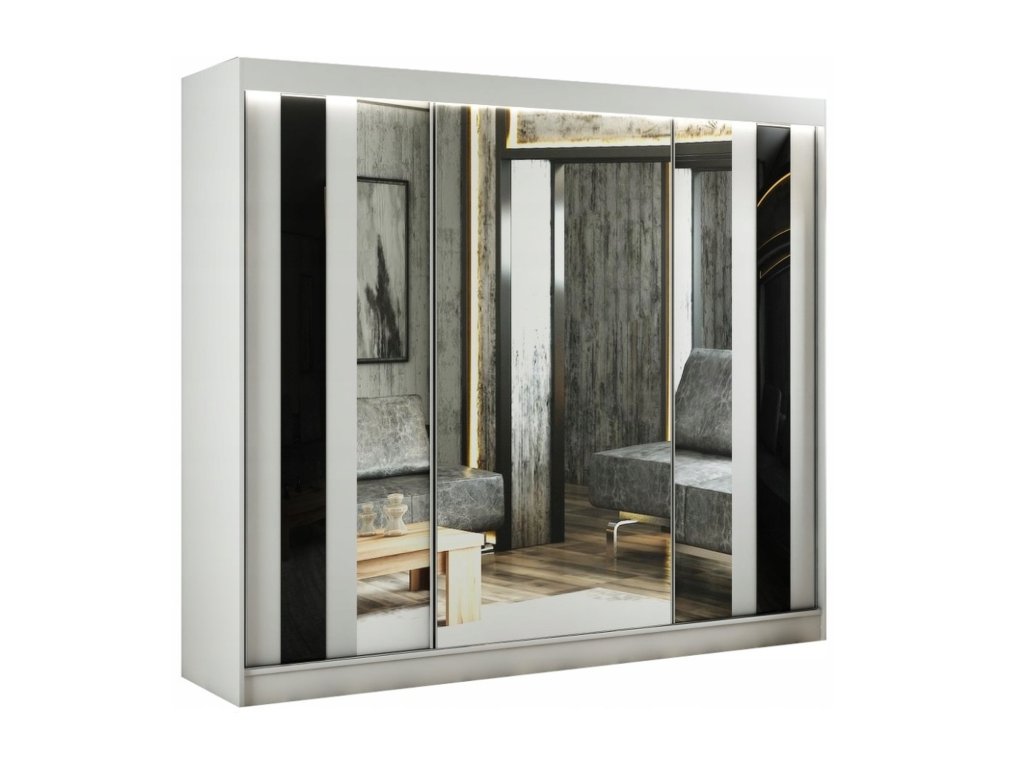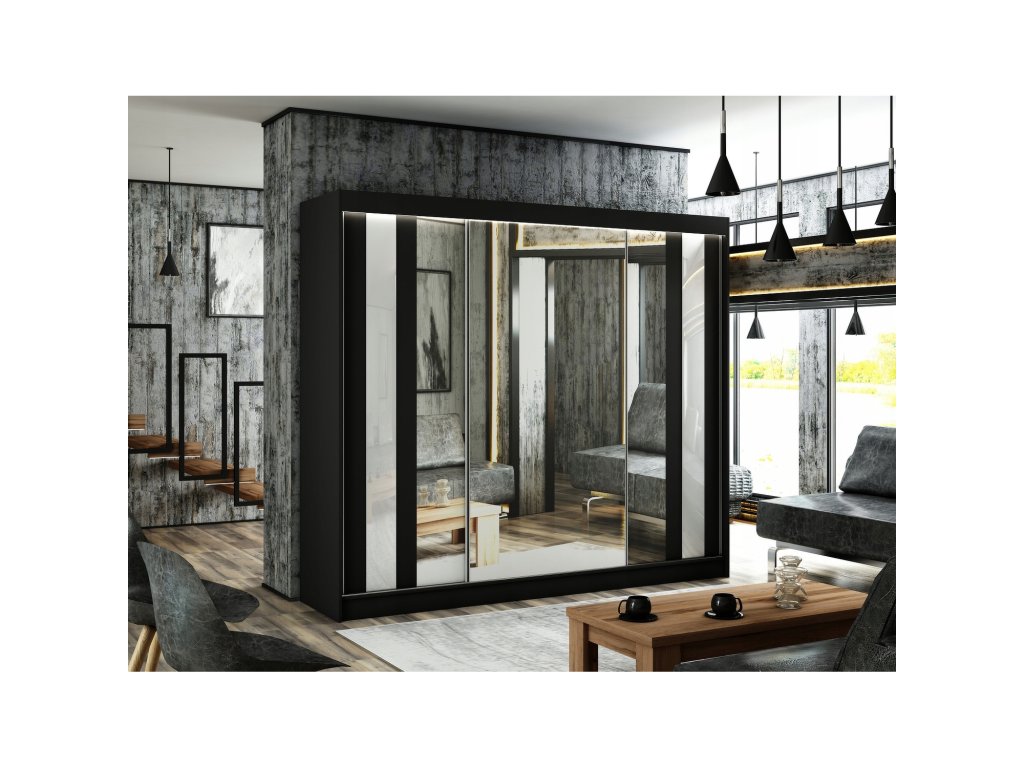 Šatní skříň Como 250 cm. Posuvná šatní skříň je vyrobena v moderním designu a nabízí velké množství praktického úložného prostoru. - použití kvalitních materiálů - 3x šatní tyč - madlo v podobě hliníkové lišty podél dveří - zajímavé provedení - snadná montáž Údržba: Povrch nábytku utřete do čista měkkým hadříkem. Vyhněte se použití chemikálií.Doplňkové parametry