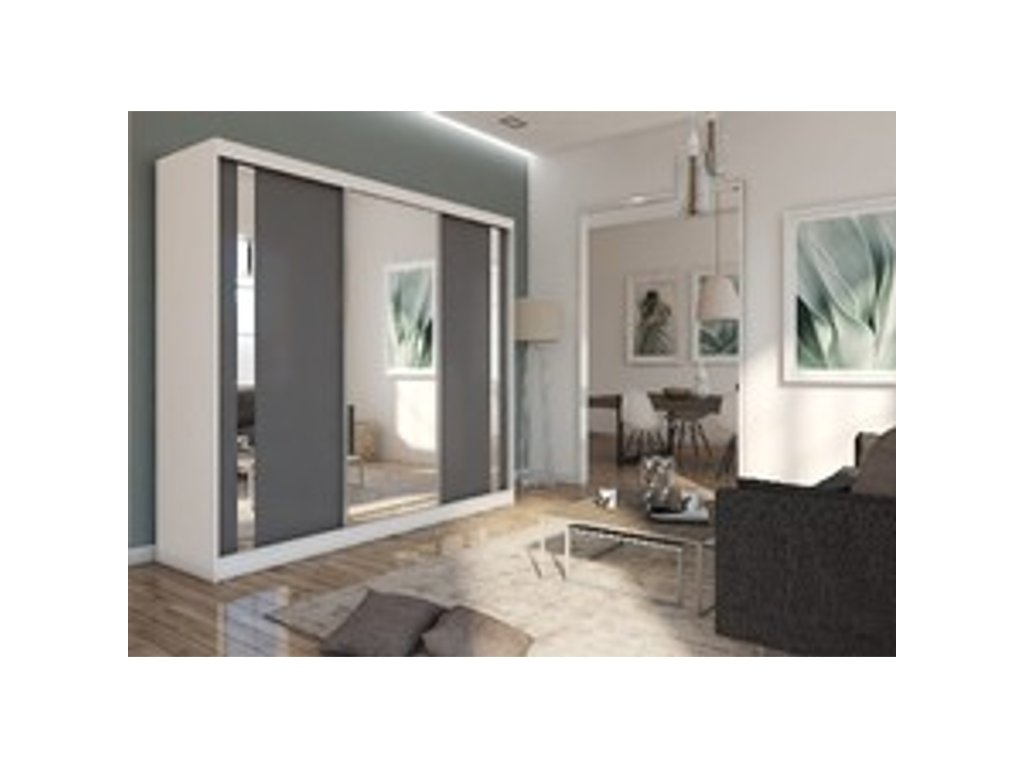 Šatní skříň GRACJA 240 cm. Posuvná šatní skříň je vyrobena v moderním designu a nabízí velké množství praktického úložného prostoru. - použití kvalitních materiálů - 2x šatní tyč - madlo v podobě hliníkové lišty podél dveří - zajímavé provedení - snadná montáž Údržba: Povrch nábytku utřete do čista měkkým hadříkem. Vyhněte se použití chemikálií.Doplňkové parametry