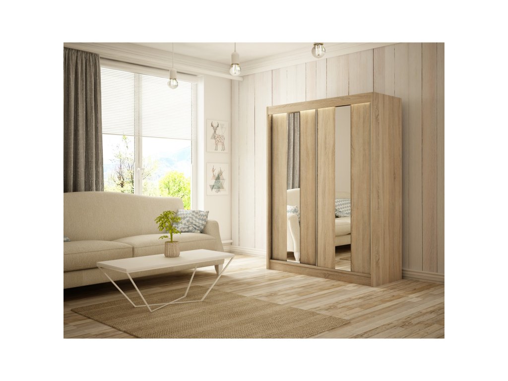 Posuvná šatní skříň Luke 120 cm je vyrobena v moderním designu a nabízí velké množství praktického úložného prostoru. - použití kvalitních materiálů - 1x šatní tyč - madlo v podobě hliníkové lišty podél dveří - zajímavé provedení - snadná montáž Údržba: Povrch nábytku utřete do čista měkkým hadříkem. Vyhněte se použití chemikálií.Doplňkové parametry