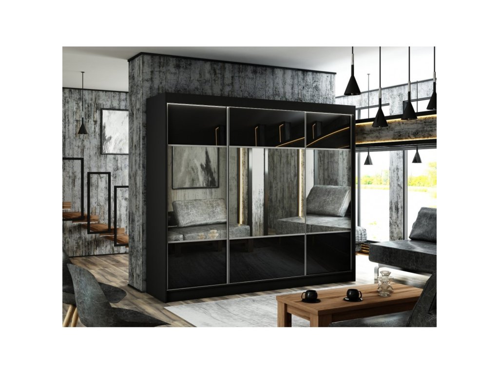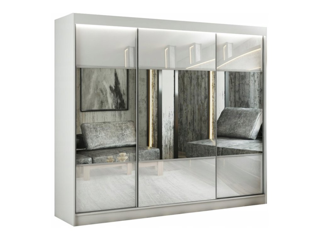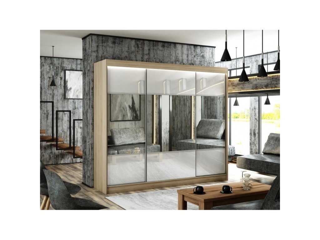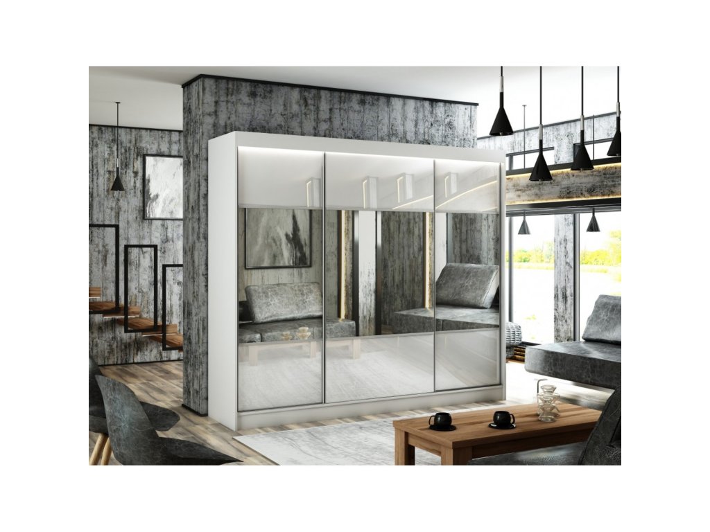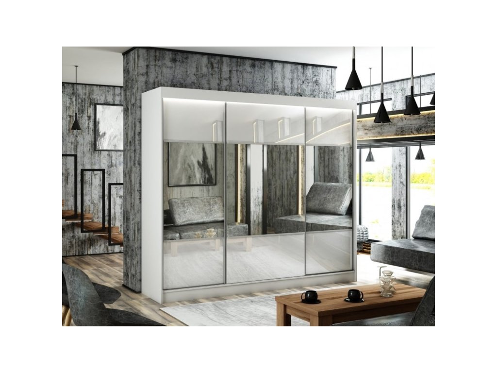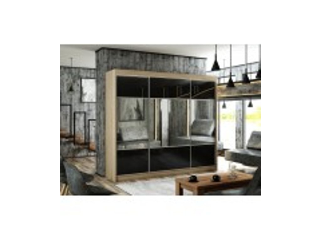 Šatní skříň RICO 250 cm. Posuvná šatní skříň je vyrobena v moderním designu a nabízí velké množství praktického úložného prostoru. - použití kvalitních materiálů - 3x šatní tyč - madlo v podobě hliníkové lišty podél dveří - zajímavé provedení - snadná montáž Údržba: Povrch nábytku utřete do čista měkkým hadříkem. Vyhněte se použití chemikálií.Doplňkové parametry