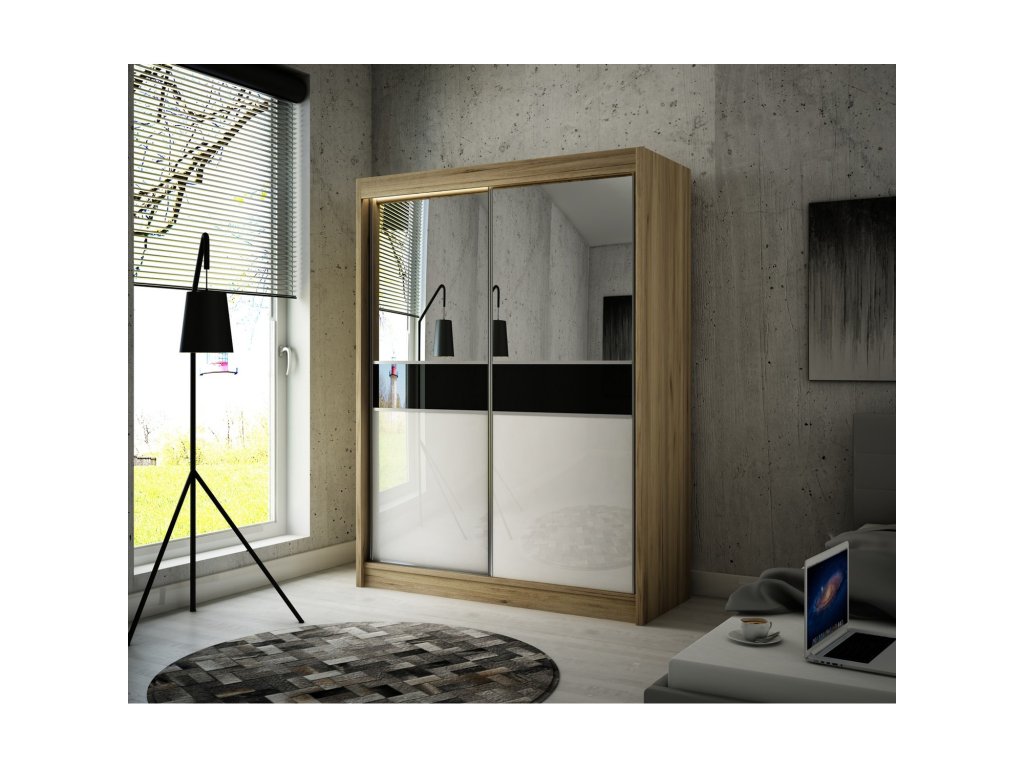Posuvná šatní skříň Tito 200 cm je vyrobena v moderním designu a nabízí velké množství praktického úložného prostoru. - použití kvalitních materiálů - 2x šatní tyč - madlo v podobě hliníkové lišty podél dveří - zajímavé provedení - snadná montáž Údržba: Povrch nábytku utřete do čista měkkým hadříkem. Vyhněte se použití chemikálií.Doplňkové parametry