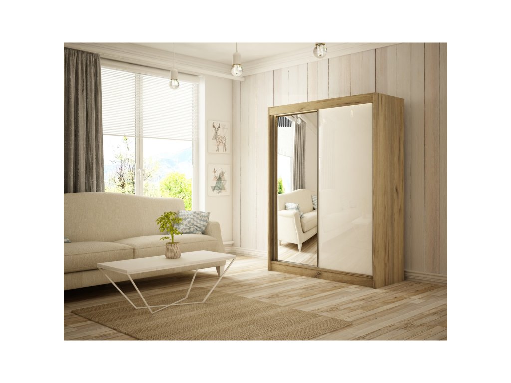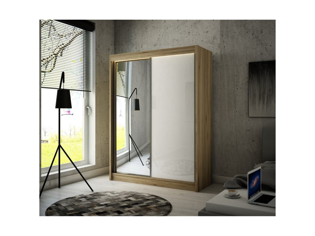 Kvalitní šatní skříň Velis - 120 cm. Posuvná šatní skříň je vyrobena v moderním designu a nabízí velké množství praktického úložného prostoru. - použití kvalitních materiálů - 1x šatní tyč - madlo v podobě hliníkové lišty podél dveří - zajímavé provedení - snadná montáž Údržba: Povrch nábytku utřete do čista měkkým hadříkem. Vyhněte se použití chemikálií.Doplňkové parametry