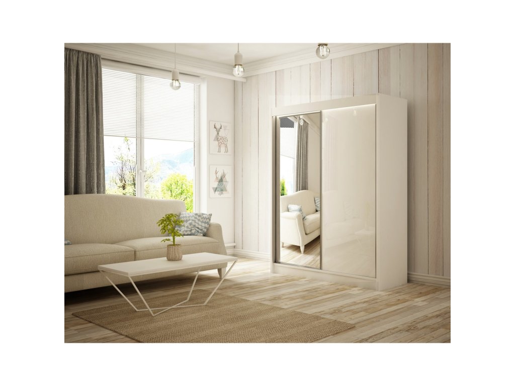 Kvalitní šatní skříň Velis - 150 cm. Posuvná šatní skříň je vyrobena v moderním designu a nabízí velké množství praktického úložného prostoru. - použití kvalitních materiálů - 1x šatní tyč - madlo v podobě hliníkové lišty podél dveří - zajímavé provedení - snadná montáž Údržba: Povrch nábytku utřete do čista měkkým hadříkem. Vyhněte se použití chemikálií.Doplňkové parametry