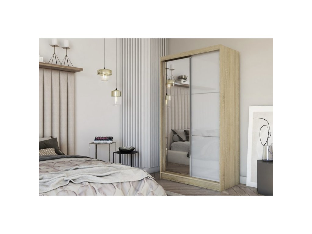 Posuvná šatní skříň Viviana je vyrobena v moderním designu a nabízí velké množství praktického úložného prostoru. - použití kvalitních materiálů - 1x šatní tyč - madlo v podobě hliníkové lišty podél dveří - zrcadlo na přední straně dveří - zajímavé provedení - snadná montáž Údržba: Povrch nábytku utřete do čista měkkým hadříkem. Vyhněte se použití chemikálií.Doplňkové parametry