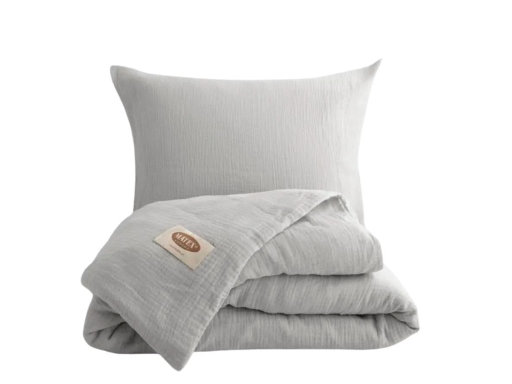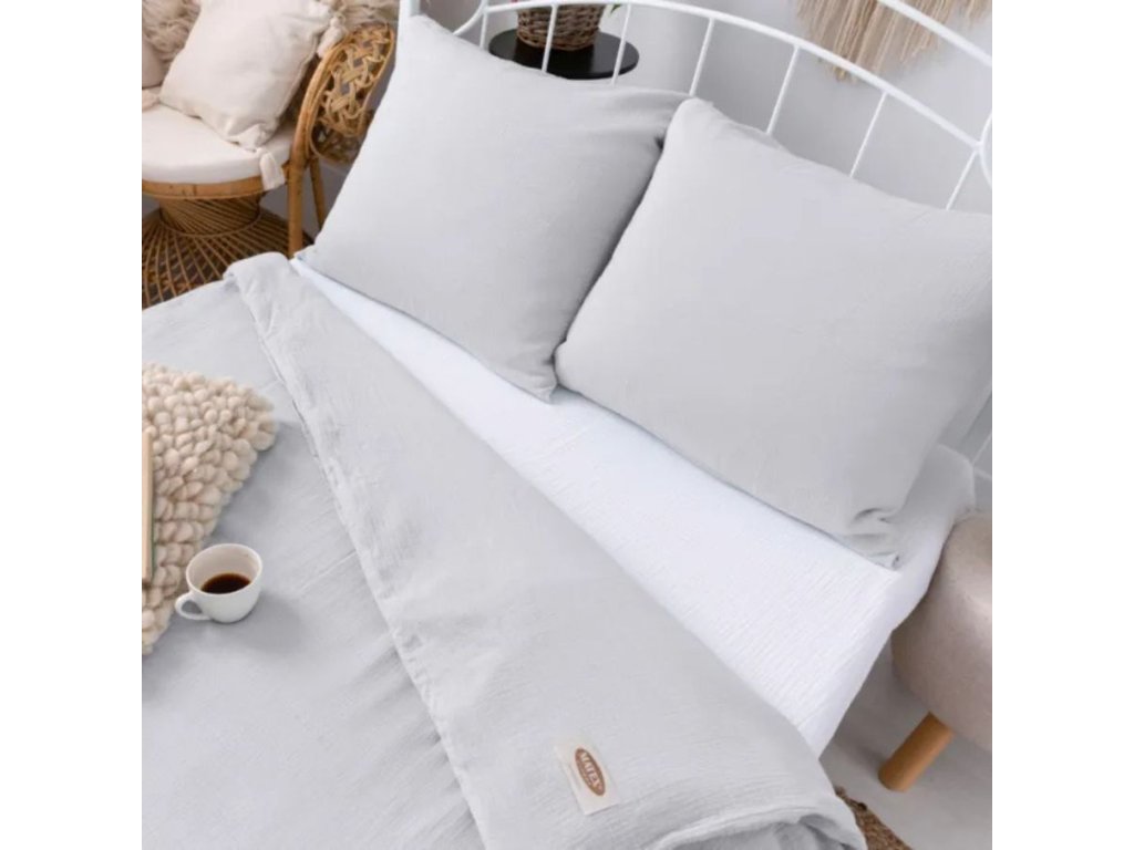 Mušelínové bavlněné povlečení MATEX 220x200 cm. Bavlněné mušelínové povlečení je prodyšné, jemné, vyrobené ze 100% zmačkané bavlny. Na dotek je vysoce kvalitní. Díky výjimečně měkké textuře je vhodné pro dospělé i děti. Důležité je, že se mušelín nepřehřívá a spáči se nepotí. Další výhodou je, že není nutné žehlit, což šetří čas. Před prvním použitím vyprat. Rozměry: - povlak na peřinu 220x200 cm - povlak na polštář 70x80 cm - 2x Pokyny pro údržbu: - prát na 40 °C - nečistit chemicky - nebělit - žehlit při teplotě max. 150 °C - sušit pověšenímDoplňkové parametry