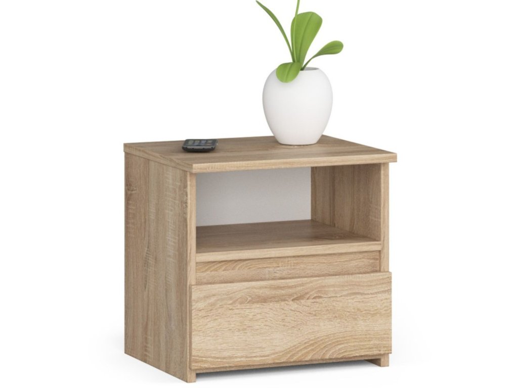 Noční stolek CL1 - dub sonoma. Stolek je vybaven jednou zásuvkou a taktéž jednou poličkou. Skvělé na uchovávání knížek šperků nebo jiných drobností. - použití kvalitních materiálů - zajímavé provedení - snadná montáž - prostorná zásuvka poskytne úložný prostor Údržba: Povrch nábytku utřete do čista měkkým hadříkem. Vyhněte se použití chemikálií.Doplňkové parametry