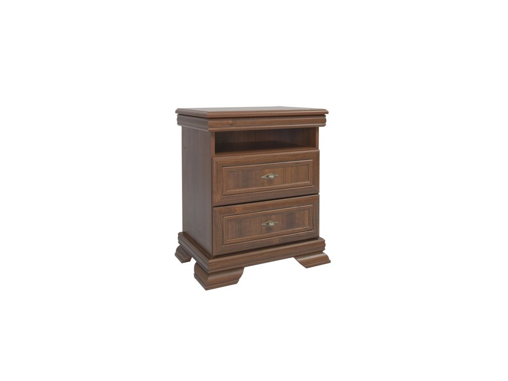 Noční stolek Kora KSN. Stolek je vybaven dvěmi poličkami s jednou otevřenou policí. Zabírá málo místa a tudíž se skvěle hodí do menších místností. - použití kvalitních materiálů - zajímavé provedení - snadná montáž - prostorné zásuvky poskytující úložný prostor Údržba: Povrch nábytku otřete do čista měkkým hadříkem. Vyhněte se použití chemikálií.Doplňkové parametry