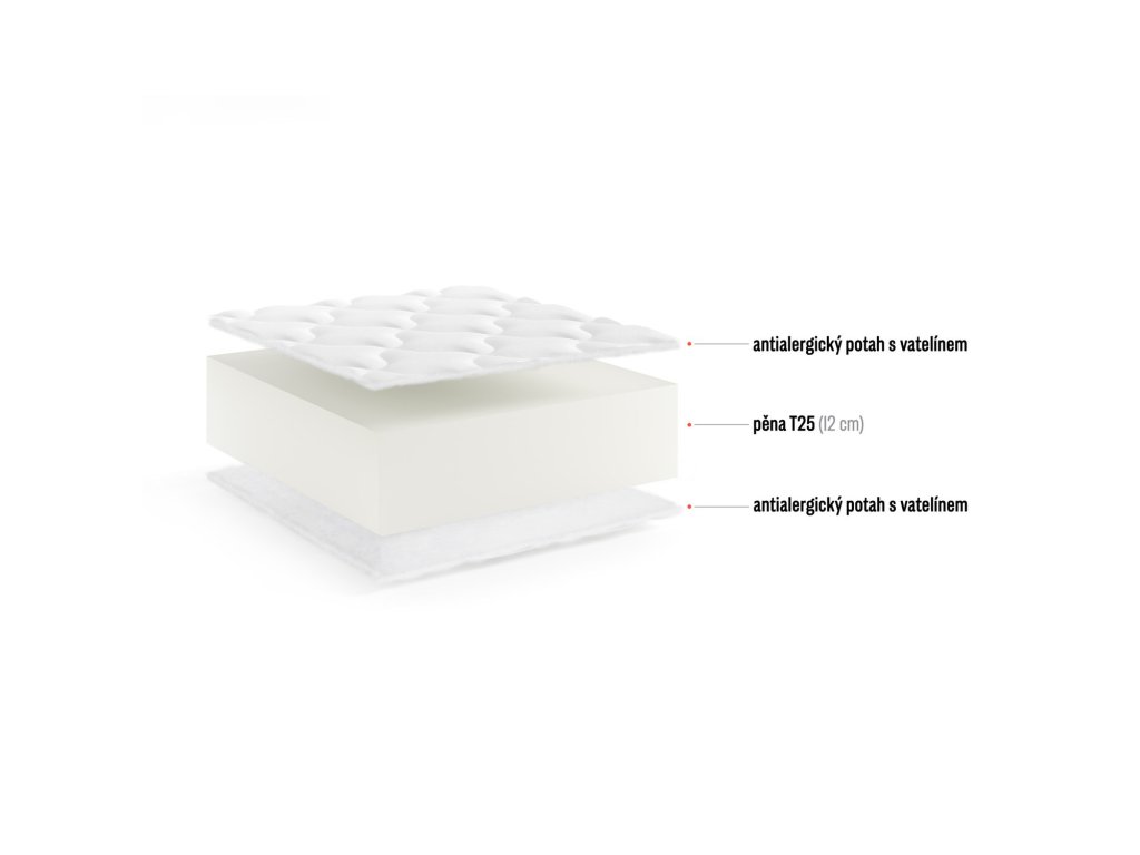 Pěnová matrace ALISA 14, rozměr 140x200 cm. Matrace by neměla ležet na zemi, a nemělo by se na ní skákat. Potah: Matrace má po celé své délce všitý zip, umožňující snadné a rychlé sejmutí povlaku, který je možné prát na 40 °C. Pěna: Je vyrobena z vysoce kvalitní polyuretanové pěny T25 se zvýšenou pružností a pevností.Doplňkové parametry