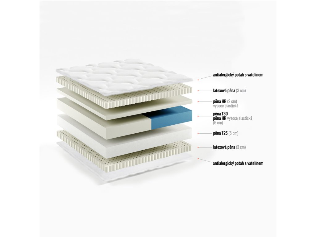 Oboustranná pěnová matrace POPPY MAXI, rozměr 160x200 cm. Matrace by neměla ležet na zemi, a nemělo by se na ní skákat. Díky použití 7zónové polyuretanové pěny poskytuje matrace pocit lehké tělesné masáže, která zlepšuje prokrvení a má ortopedické vlastnosti. Latexová vrstva má antialergické vlastnosti - neabsorbuje prach, zajišťuje dostatečnou cirkulaci vzduchu. Potah: Matrace má po celé své délce všitý zip, umožňující snadné a rychlé sejmutí povlaku, který je možné prát na 40 °C. Pěna: Je vyrobena z vysoce kvalitní polyuretanové pěny T25 se zvýšenou pružností a pevností. T30 profilované pěny s masážními vlastnostmi. HR pěny, která vyniká tvarovou stálostí a vysokou elasticitou.Doplňkové parametry