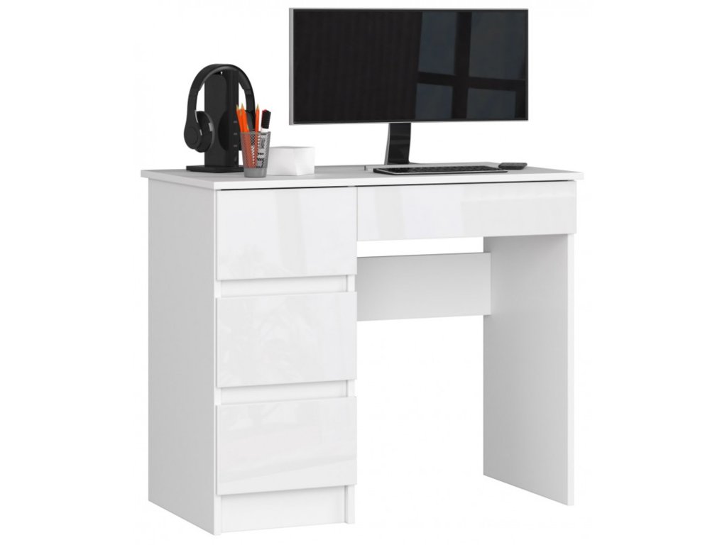 Počítačový stůl A7 levá bílá lesk