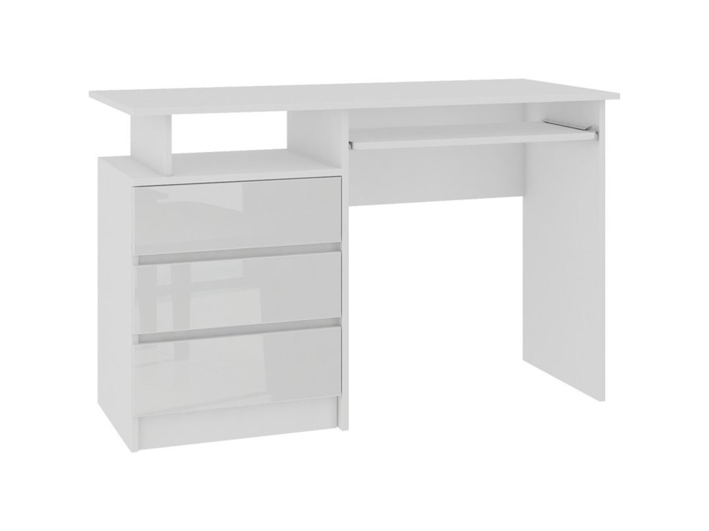 Počítačový stůl CLP lesklá bílá. Jednoduchý stůl v moderním barevném provedení. Stůl je vhodný do kanceláře i do dětského pokoje. Využití najde při práci s počítačem i při psaní domácích úkolů. Díky své velikosti se dobře vejde i do menších prostor. - jednoduchý a moderní design vytváří příjemný pracovní prostor - hladké boky - v lesku je pouze čela zásuvek - zásuvky a polička na klávesnici se pohybují na kovových válečkových vodítkách - snadná montáž Údržba: Povrch nábytku utřete do čista měkkým hadříkem. Vyhněte se použití chemikálií.Doplňkové parametry