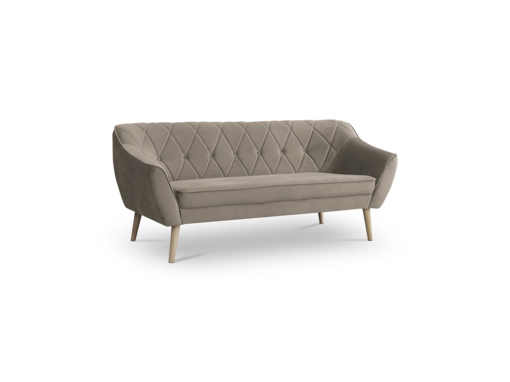 Elegantní pohovka 183 Leah II. Stylové nohy jsou vyrobeny z bukového dřeva. Sedák i opěrky jsou vyplněné polyuretanovou pěnou. Potah: tkanina Velluto se řadí mezi velurovou tkaninu. Jedná se o textilii podobnou plyši s krátkým vlasem, která se vyznačuje sametově jemným a měkkým povrchem. Je vyrobená ze 100% polyesteru. Foto je pouze ilustrační.Doplňkové parametry