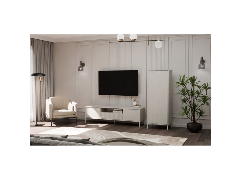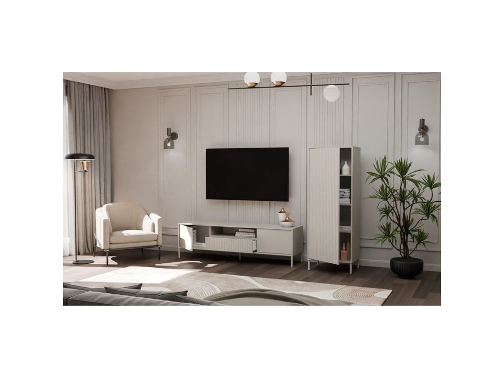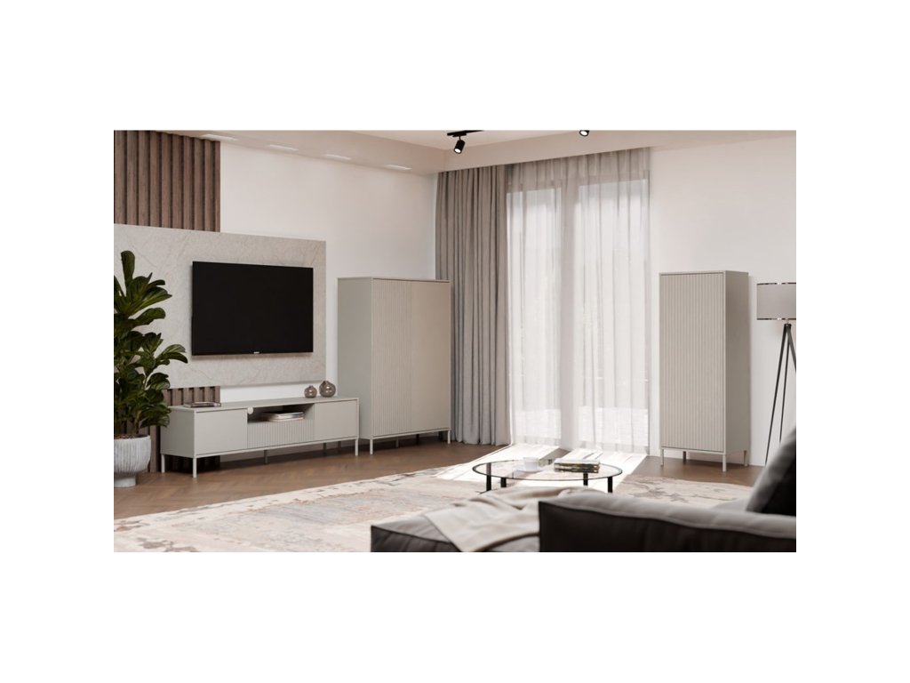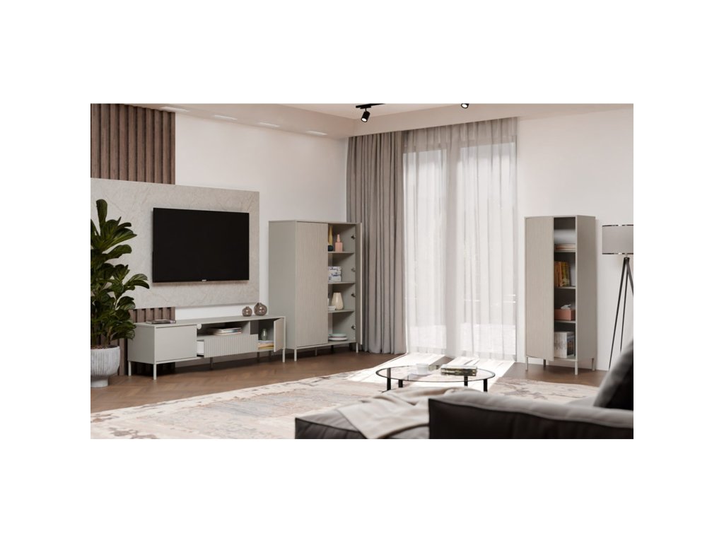 Policový regál KAMARO 1DD SLIM - béžová. Tento regál je moderní a funkční kus nábytku, který skvěle poslouží v obývacím pokoji, pokoji pro hosty, ložnici nebo pracovně. Nabízí ještě více úložného prostoru při zachování elegantního charakteru. Systém TIP-ON umožňuje pohodlné otevírání bez úchytek. - minimalistický design - bezúchytková čela zásuvek a dvířek zajišťují pohodlné používání - velmi dobrá kvalita zpracování - dvířka drážkovaná - efekt připomínající lamely Údržba: Utřete povrch nábytku měkkým hadříkem. Vyhněte se používání silných chemikálií.Doplňkové parametry