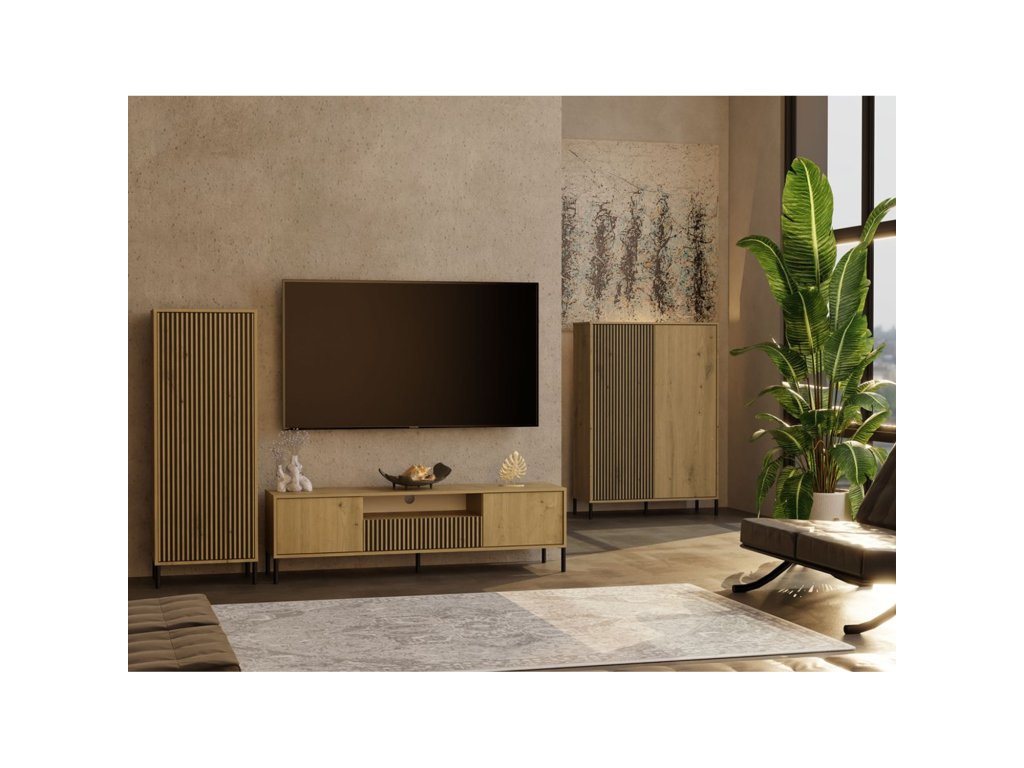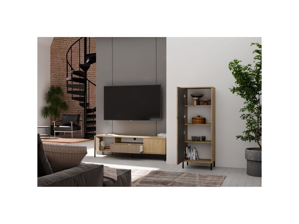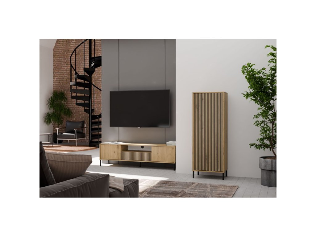 Policový regál KAMARO 1DD SLIM - dub artisan. Tento regál je moderní a funkční kus nábytku, který skvěle poslouží v obývacím pokoji, pokoji pro hosty, ložnici nebo pracovně. Nabízí ještě více úložného prostoru při zachování elegantního charakteru. Systém TIP-ON umožňuje pohodlné otevírání bez úchytek. - minimalistický design - bezúchytková čela zásuvek a dvířek zajišťují pohodlné používání - velmi dobrá kvalita zpracování - dvířka drážkovaná - efekt připomínající lamely Údržba: Utřete povrch nábytku měkkým hadříkem. Vyhněte se používání silných chemikálií.Doplňkové parametry