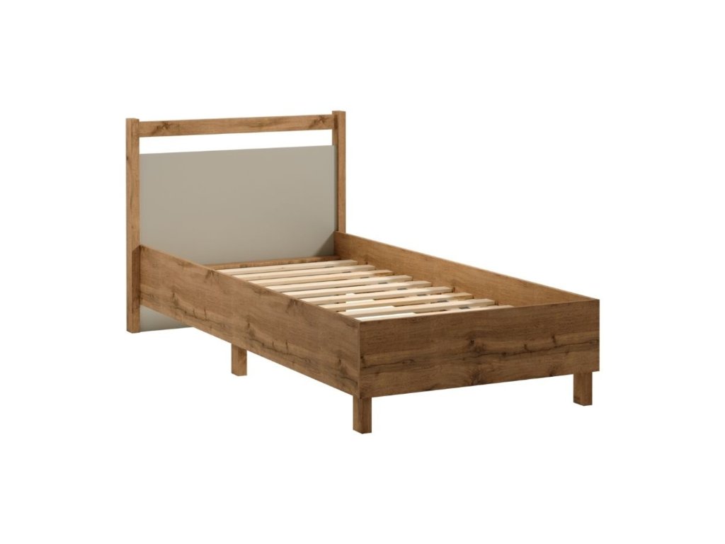 Postel INDIGO L90. Rám postele L90 je vyroben z masivu borovice. Plocha na spaní 90x200 cm. Přírodní barvy teplého dekoru dub Wotan jako základu nábytku v kombinaci s jednobarevnou béžovou nebo zelenou na výběr dělají kolekci přirozeně krásnou. - vysoká pevnost, odolnost a stabilita - součástí postele je dřevěný rošt - použití kvalitních materiálů - snadná montáž Údržba: Povrch nábytku utřete do čista měkkým hadříkem. Vyhněte se použití chemikálií.Doplňkové parametry