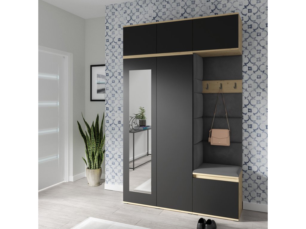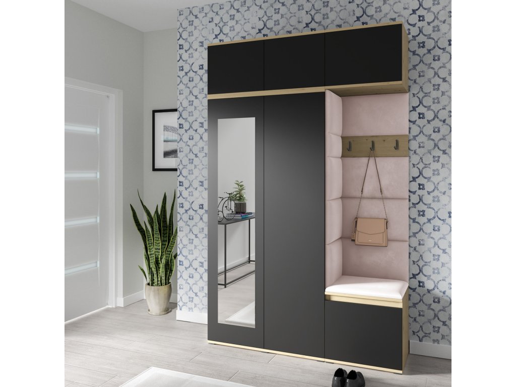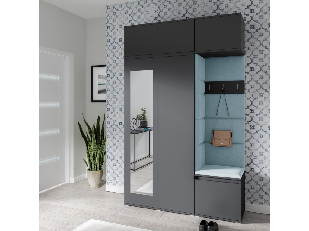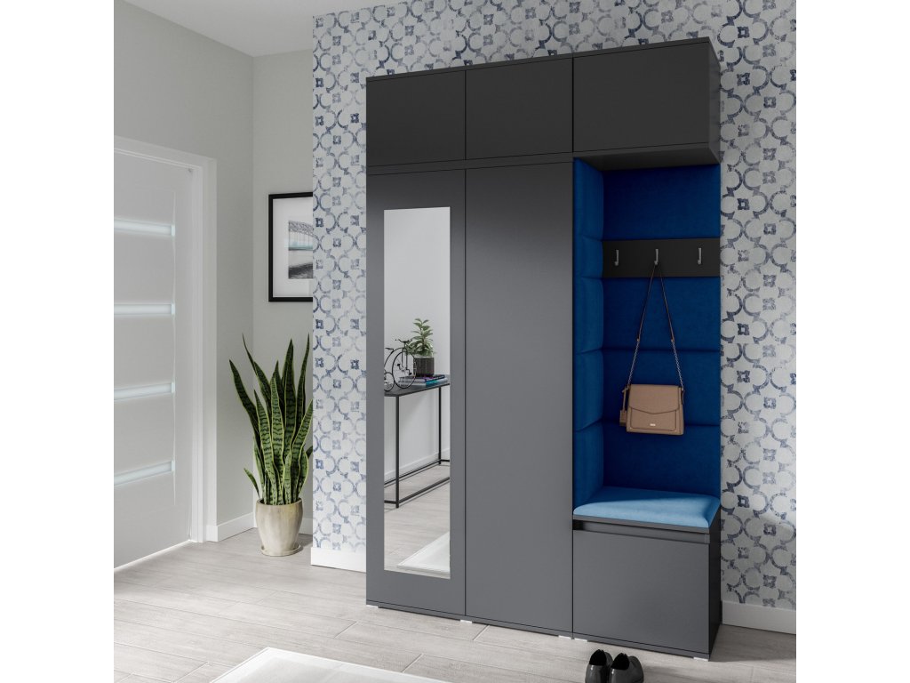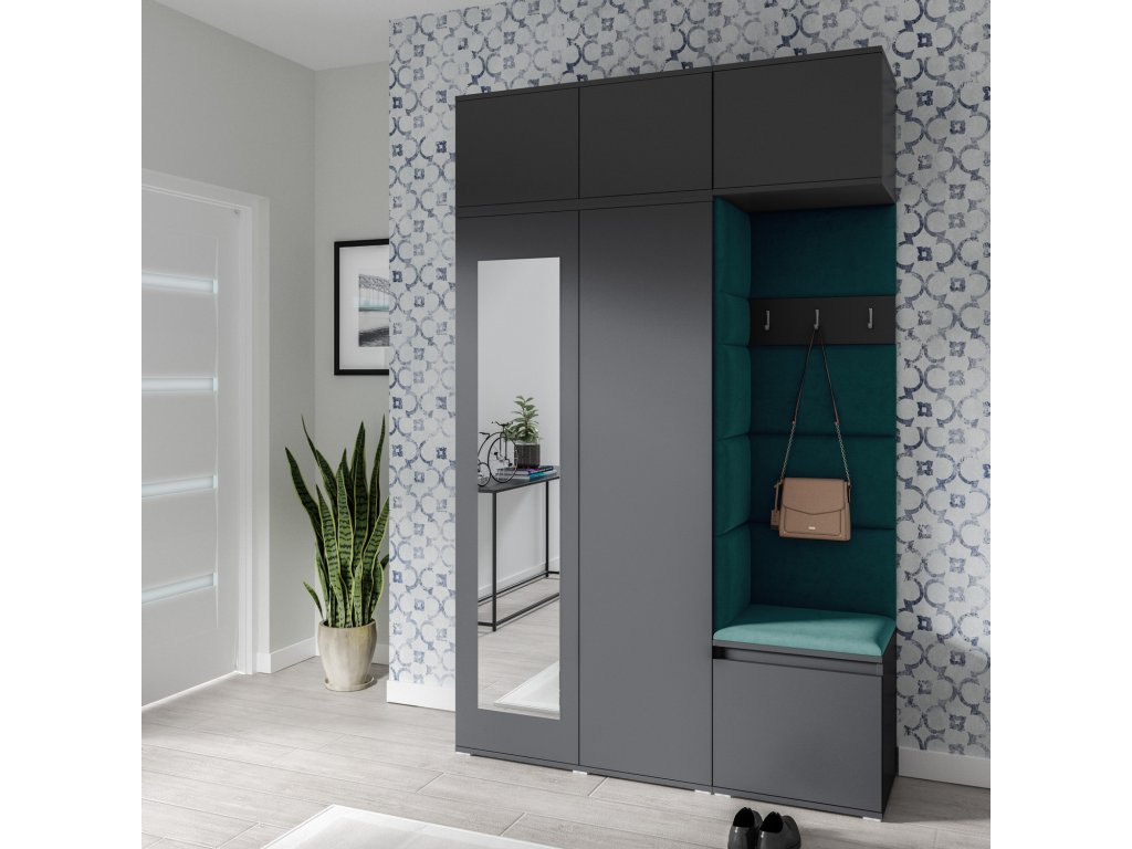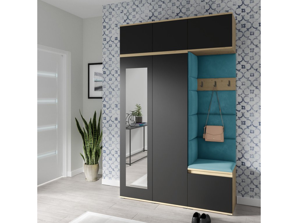 Předsíňová stěna AMI 18, je moderní a praktický prvek do vstupních prostor vašeho domu. Předsíňová stěna obsahuje deset čalouněných panelů, které se montují přímo na stěnu za pomoci lepidla. Potah botníku je tkanina TRINITY, která je měkká a příjemná na dotek. Jedná se o velurovou tkaninu. Předsíňová stěna se skládá z několika částí. Údržba: Vyhněte se použití chemikálií. Lepidlo není součástí balení.Doplňkové parametry