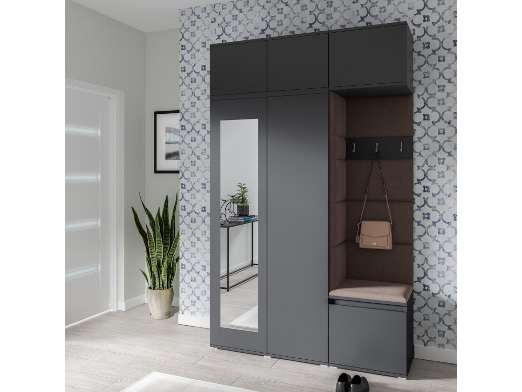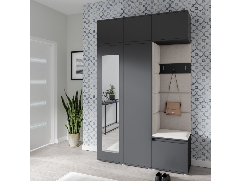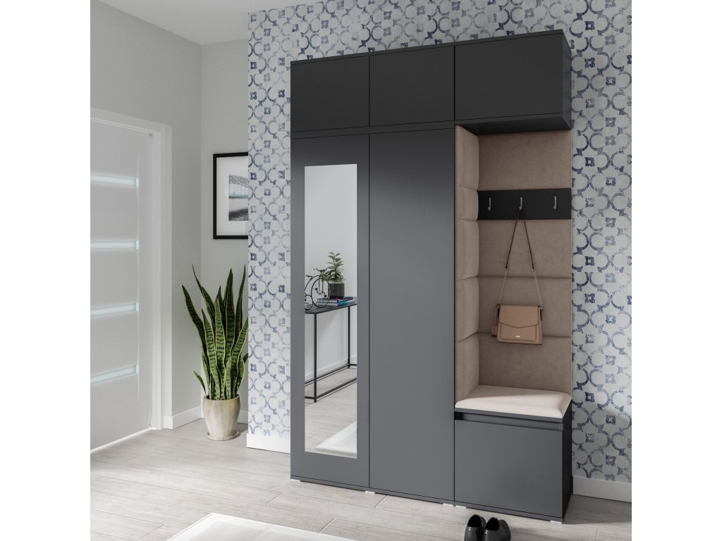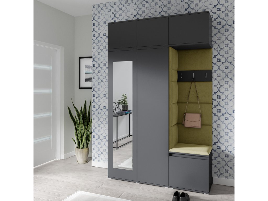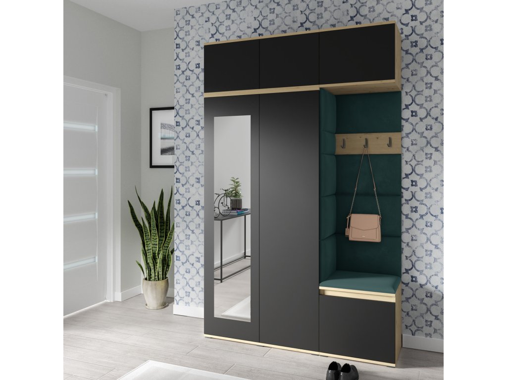 Předsíňová stěna AMI 18, je moderní a praktický prvek do vstupních prostor vašeho domu. Předsíňová stěna obsahuje deset čalouněných panelů, které se montují přímo na stěnu za pomoci lepidla. Potah botníku je tkanina TRINITY, která je měkká a příjemná na dotek. Jedná se o velurovou tkaninu. Předsíňová stěna se skládá z několika částí. Údržba: Vyhněte se použití chemikálií. Lepidlo není součástí balení.Doplňkové parametry