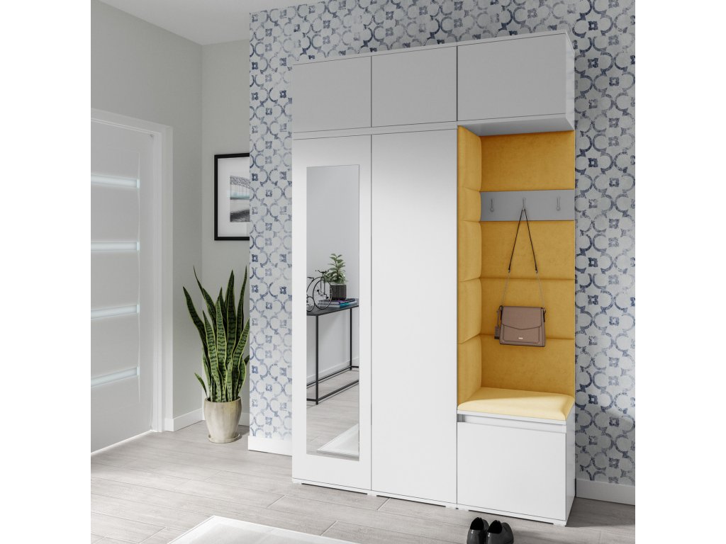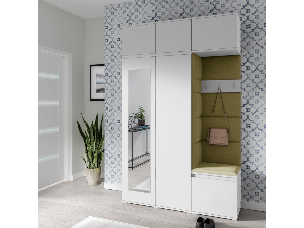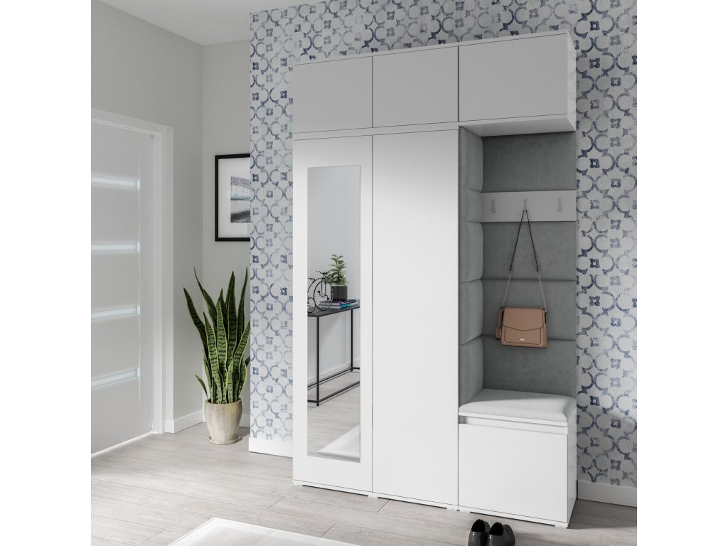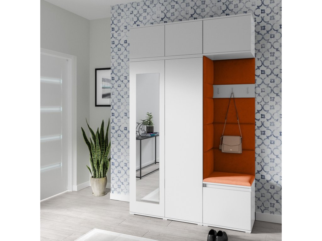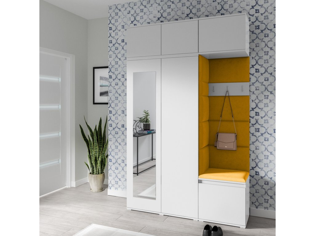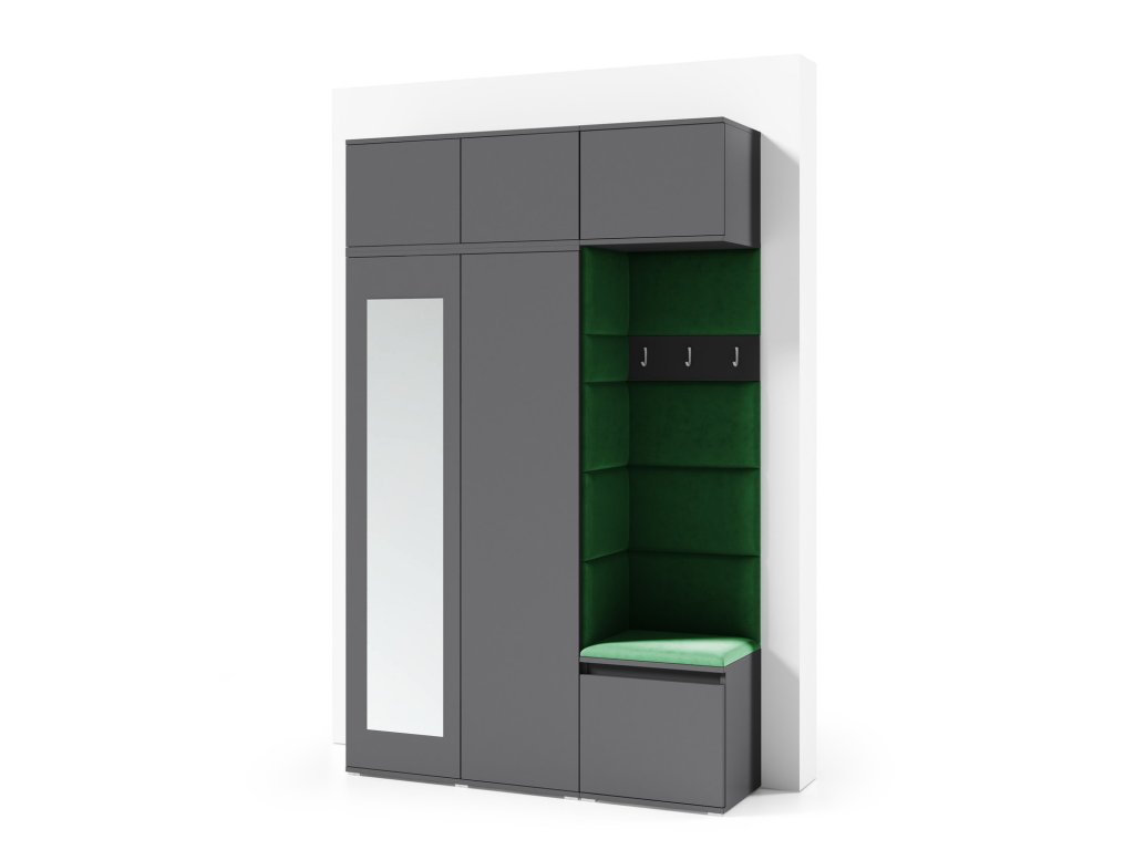 Předsíňová stěna AMI 18, je moderní a praktický prvek do vstupních prostor vašeho domu. Předsíňová stěna obsahuje deset čalouněných panelů, které se montují přímo na stěnu za pomoci lepidla. Potah botníku je tkanina TRINITY, která je měkká a příjemná na dotek. Jedná se o velurovou tkaninu. Předsíňová stěna se skládá z několika částí. Údržba: Vyhněte se použití chemikálií. Lepidlo není součástí balení.Doplňkové parametry