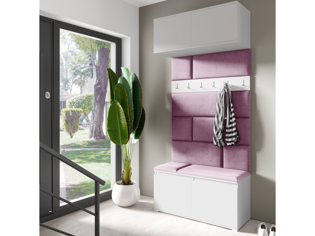 Předsíňová stěna AMI 23. Předsíňová stěna je moderní a praktický prvek do vstupních prostor vašeho domu. Obsahuje 10 čalouněných panelů, které se montují přímo na stěnu za pomoci lepidla. Potah botníku je tkanina TRINITY, která je měkká a příjemná na dotek. Jedná se o velurovou tkaninu. Předsíňová stěna se skládá z několika částí. Údržba: Vyhněte se použití chemikálií. Lepidlo není součástí balení.Doplňkové parametry