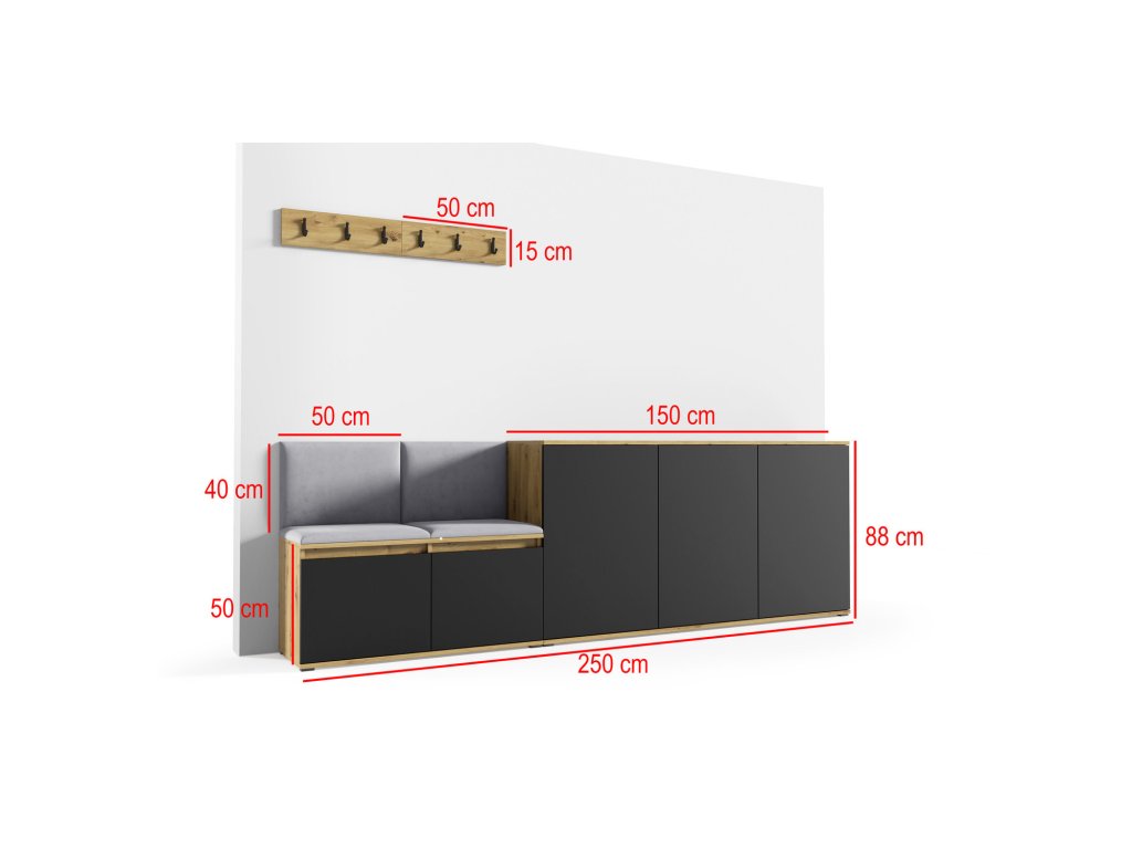 Předsíňová stěna AMI 35. Je to praktický prvek do vstupních prostor vašeho domu. Předsíňová stěna obsahuje čalouněné panely, které se montují přímo na stěnu za pomoci lepidla. Potah panelů je tkanina Trinity. Předsíňová stěna se skládá z několika částí. - kvalitní zpracování - panely - potaženy kvalitní látkou Trinity - Je to měkká a na dotek příjemná velurová tkanina. Má jemnou strukturu. Jejím charakteristickým znakem je vysoká odolnost vůči oděru. - lepidlo není součástí balení Údržba: Povrch nábytku utřete do čista měkkým hadříkem. Vyhněte se použití chemikálií.Doplňkové parametry