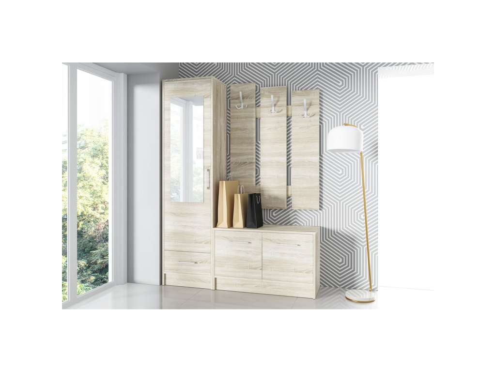 Předsíňová stěna MAXI je moderní a praktický prvek do vstupních prostor vašeho domu. Skládá se z několika částí. Tato předsíňová stěna nabízí dostatek úložného prostoru pro vaše věci. Díky svému nadčasového vzhledu, promění vhled každé předsíně. Údržba: Povrch nábytku otírejte vlhčeným hadříkem. Vyhněte se použití chemikálií.Doplňkové parametry
