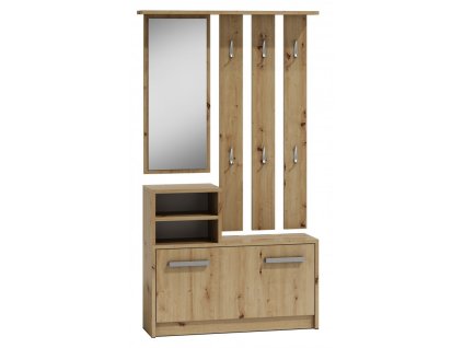 Předsíňová stěna s botníkem, je moderní a praktický prvek do vstupních prostor vašeho domu. Skládá se z několika částí. Věšák: Obsahuje šest věšáků na vaše oblečení. Výšku věšáku můžete nastavit dle vlastních potřeb. Hned vedle věšáku naleznete velké zrcadlo. Kde můžete zkontrolovat svůj finální look, před odchodem z domu. Pod věšákem jsou dvě praktické police, do kterých se vám vejdou vaše doplňky, nebo dekorace. Botník: Je tvořen na osm, až devět párů bot. Vždy záleží na velikosti obuvi. Údržba: Povrch nábytku otírejte vlhčeným hadříkem. Vyhněte se použití chemikálií.Doplňkové parametry