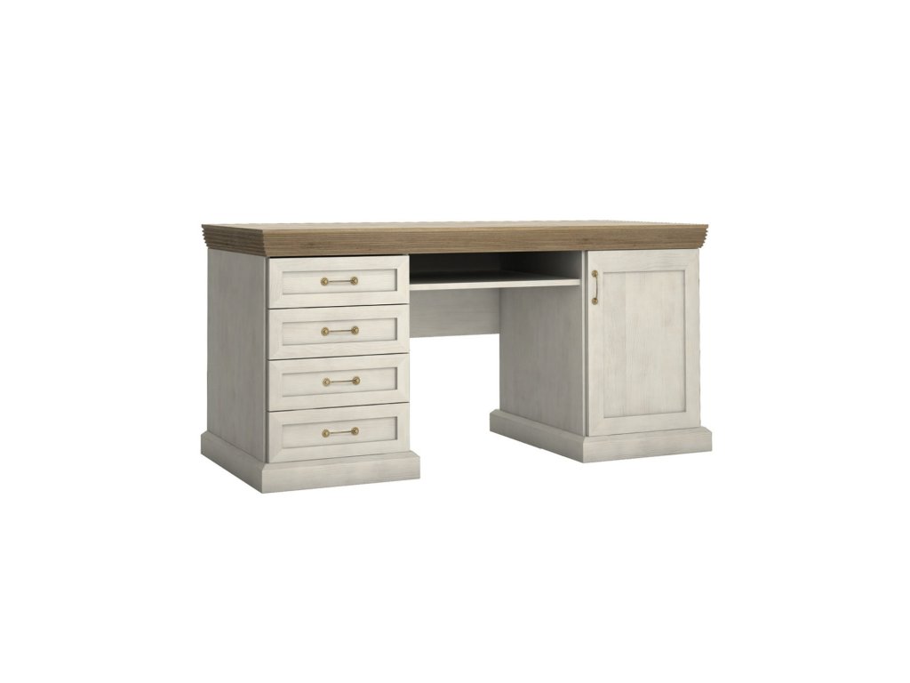 Moderní psací stůl Royal B1 je vytvořen v anglickém stylu. Nábytek je vyroben z velmi kvalitního lamina. Psací stůl zajišťuje výjimečnou funkčnost v kancelářském prostoru. Tento stůl je vybavený 4 zásuvkami, výsuvnou přihrádkou na klávesnici a skříňkou. - použití kvalitních materiálů - zajímavé provedení - kovové úchytky - snadná montáž Údržba: Povrch nábytku utřete do čista měkkým hadříkem. Vyhněte se použití chemikálií. Foto je pouze ilustrační.Doplňkové parametry