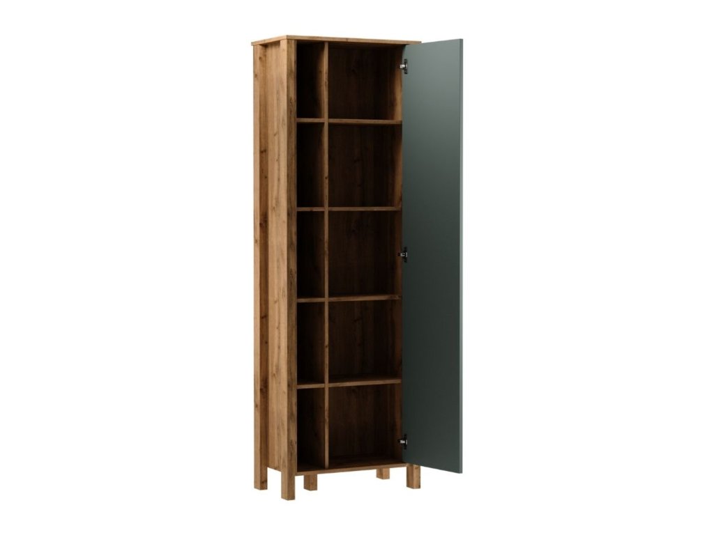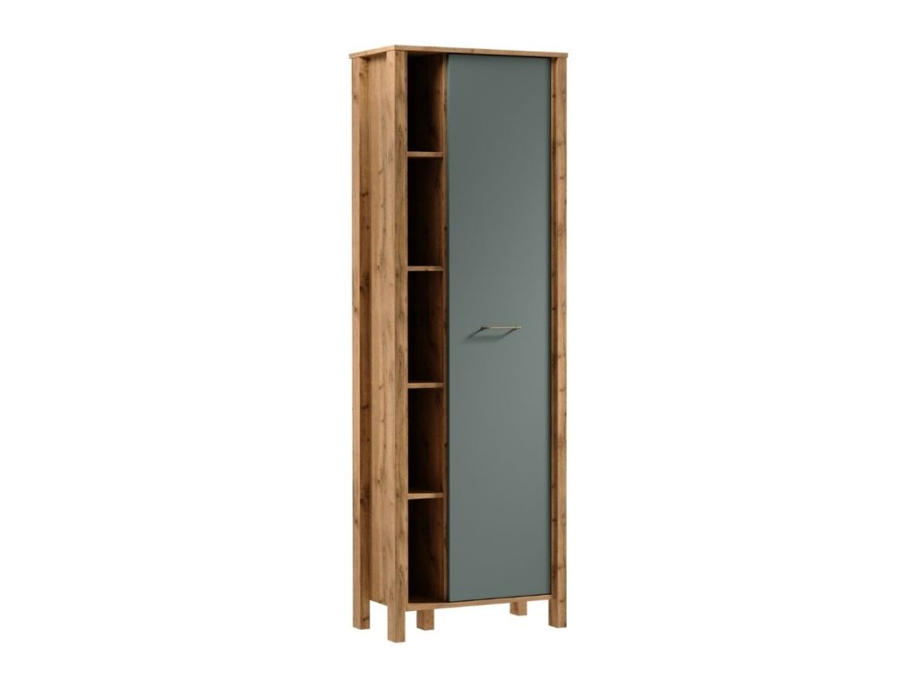 Regál INDIGO R1D. Jednoduchý a moderní regál, který vás okouzlí svou jednoduchostí a elegancí. Přírodní barvy teplého dekoru dub Wotan na korpusu nábytku v kombinaci s jednobarevnou béžovou nebo zelenou na výběr dělají kolekci přirozeně krásnou. Je vyroben z kvalitního lamina, které se vyznačuje vysokou odolností proti mechanickému poškození. - použití kvalitních materiálů - zajímavé provedení - snadná montáž Údržba: Povrch nábytku utřete do čista měkkým hadříkem. Vyhněte se použití chemikálií.Doplňkové parametry