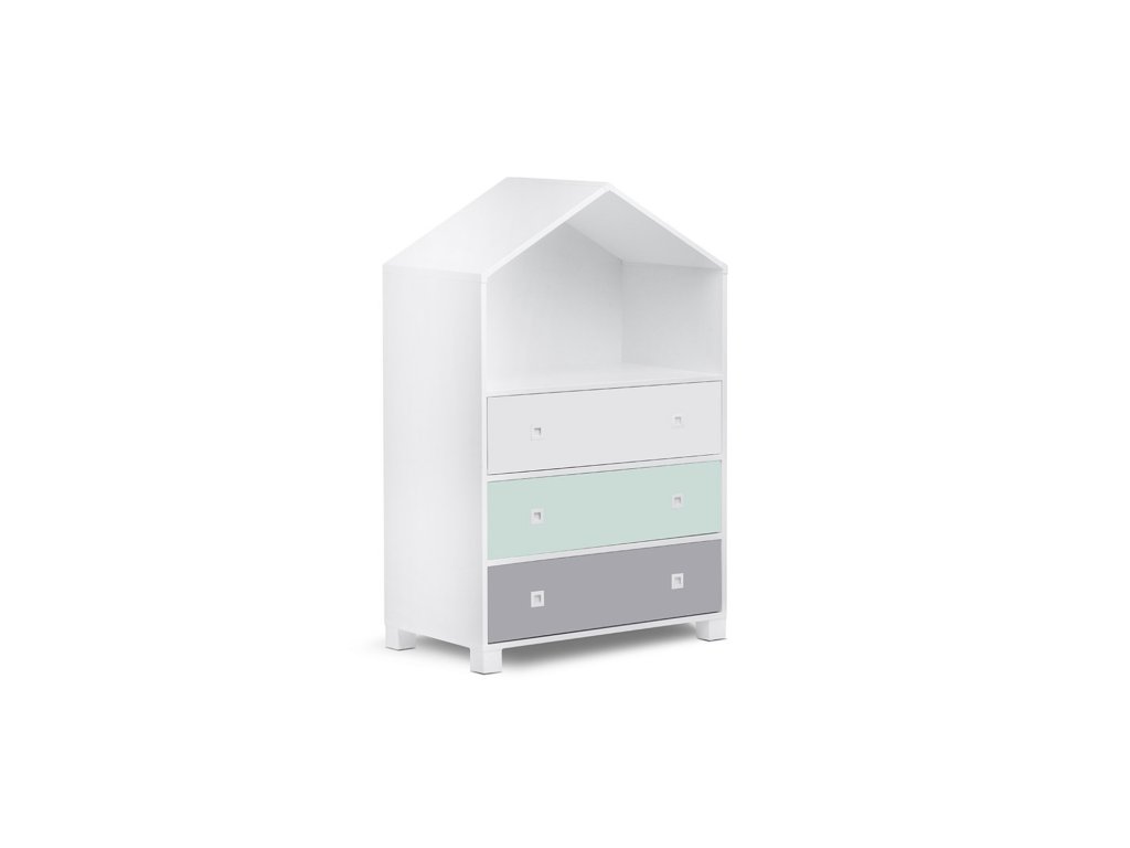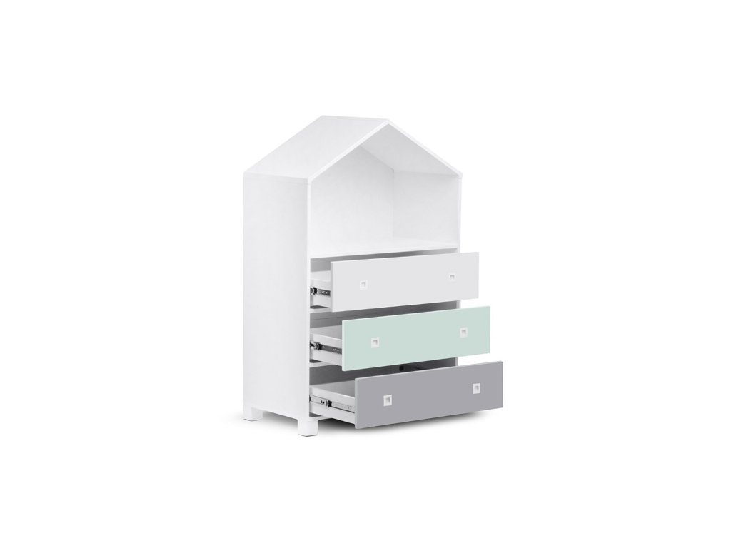 Moderní dětská komoda Mirum. Dětská komoda designově dokonale zapadá do kolekce MIRUM, která vytváří kouzelnou ulici domů. Navíc se vyznačuje mimořádnou odolností. Dětský nábytek z této kolekce se díky tomu stává bezpečným hřištěm - můžete na něj lézt, sedět, hrát si bez starostí. Údržba: Povrch nábytku utřete do čista měkkým hadříkem. Vyhněte se použití chemikálií.Doplňkové parametry