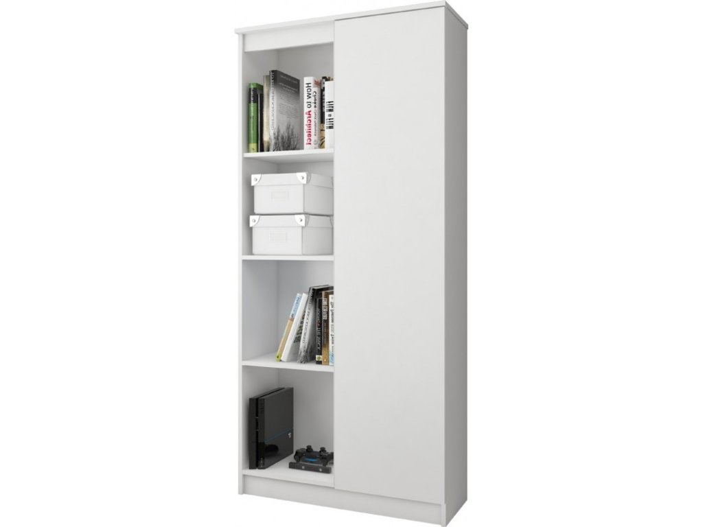 Regál R 80cm 1 dvířka 6 poliček bílá