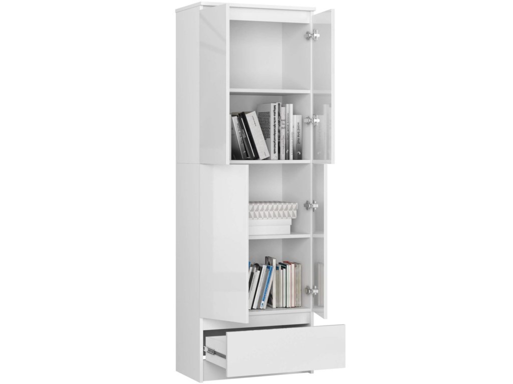 Regál R 60cm 1 SZ 4D - bílý lesk. Jednoduchý a moderní regál R 60 cm, který vás okouzlí svou jednoduchostí a elegancí. Je vyroben z kvalitního lamina, které se vyznačuje vysokou odolností proti mechanickému poškození. - použití kvalitních materiálů - v lesku pouze pohledová část - zajímavé provedení - snadná montáž Údržba: Povrch nábytku utřete do čista měkkým hadříkem. Vyhněte se použití chemikálií.Doplňkové parametry